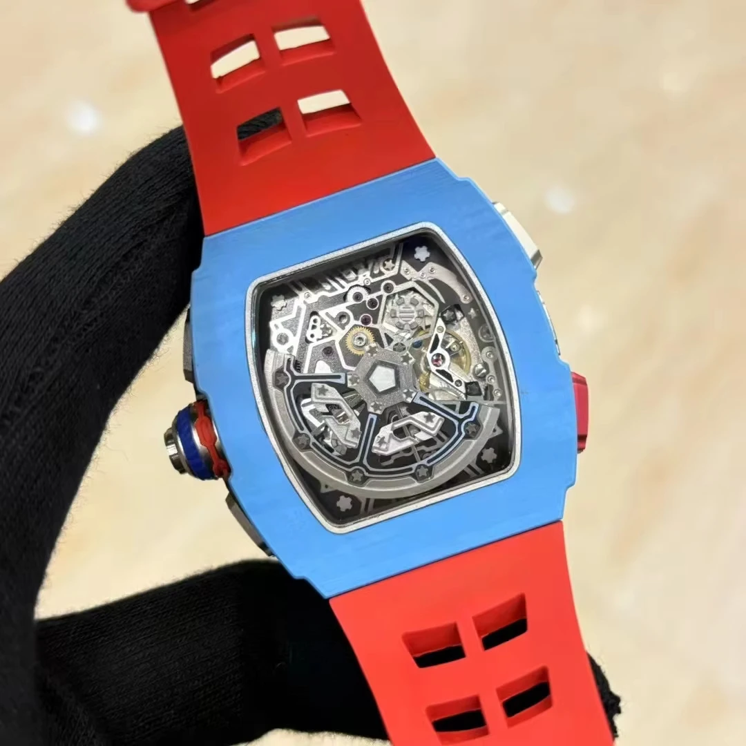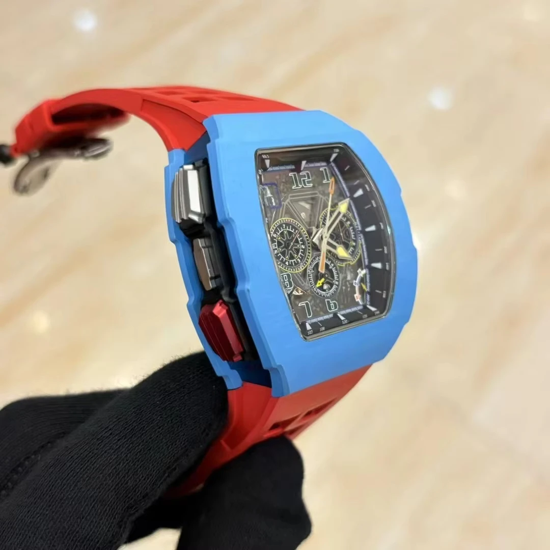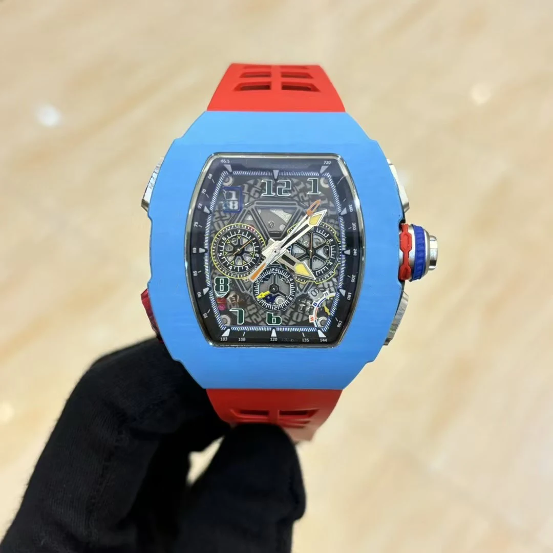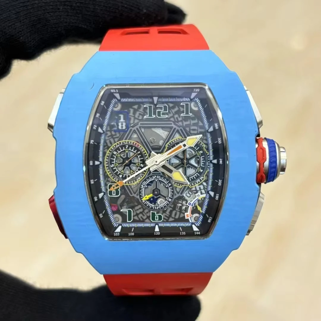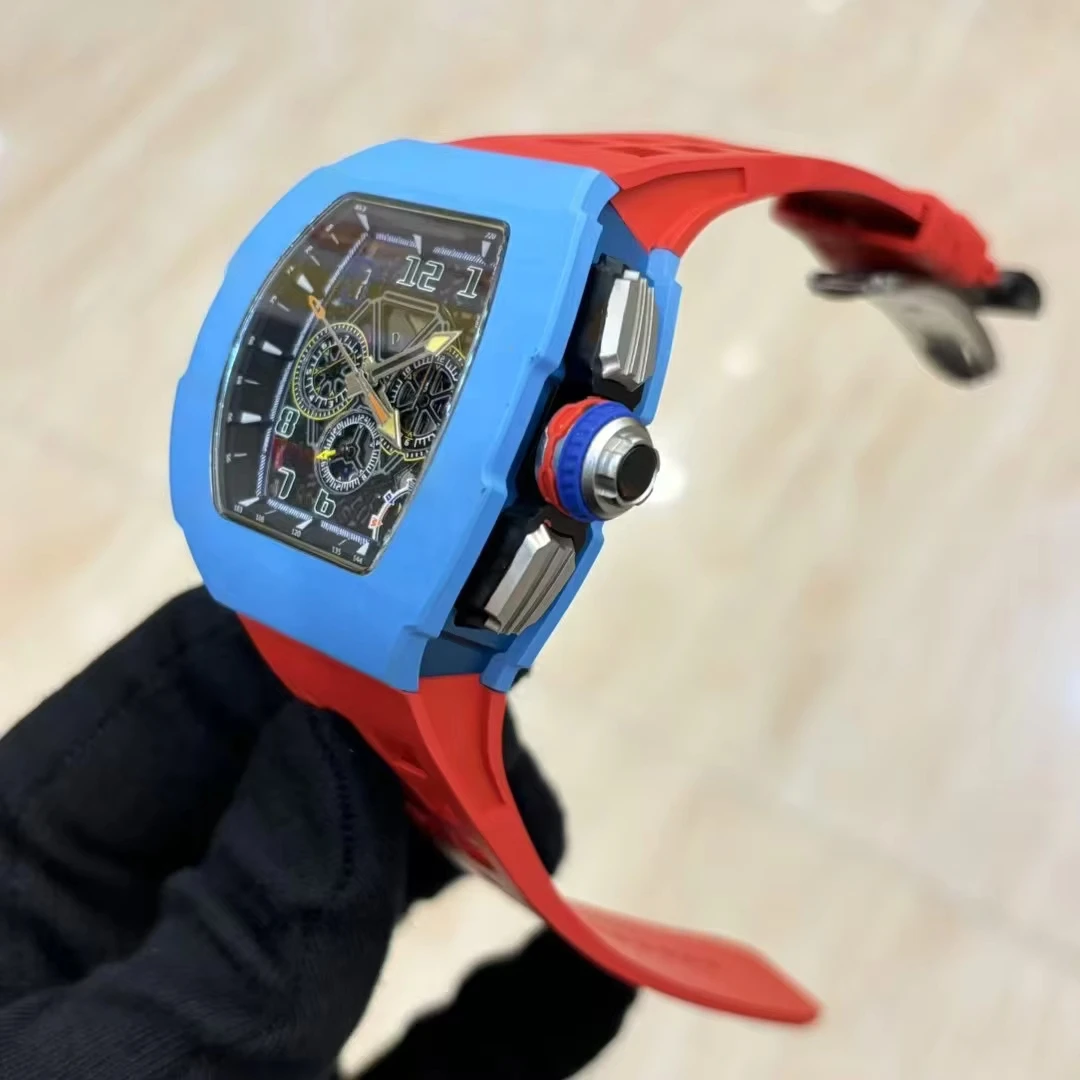 New Hot Selling Barrel-shaped Carbon Fiber case Rubber Strap Mechanical Watch Sports Three-eye Business Waterproof Men's Watches