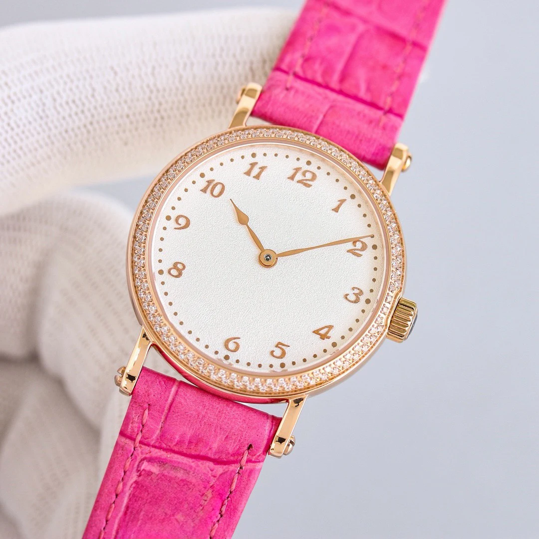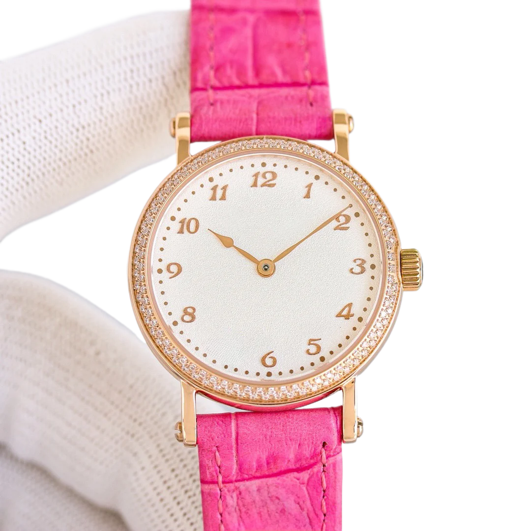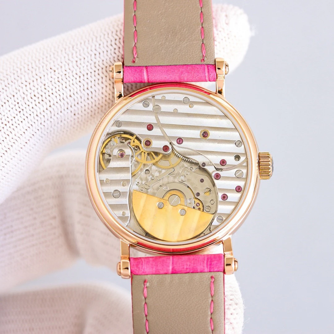 New Luxury pink Genuine Leather Strap Women's Mechanical Watch Slie Versatile Stylish, High-quality Automatic Waterproof Watches