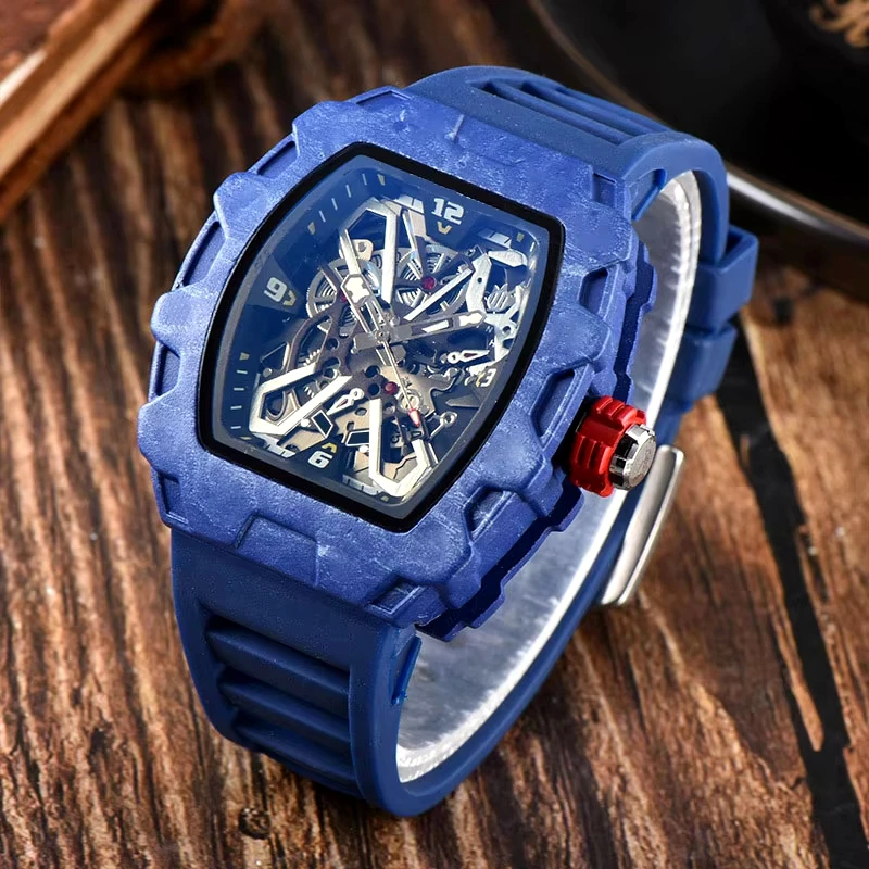 High-quality Elegant Skeleton Diving Business Men's Mechanical Watch Carbon Fiber Fashion Sports Casual Luminous Automatic Watch