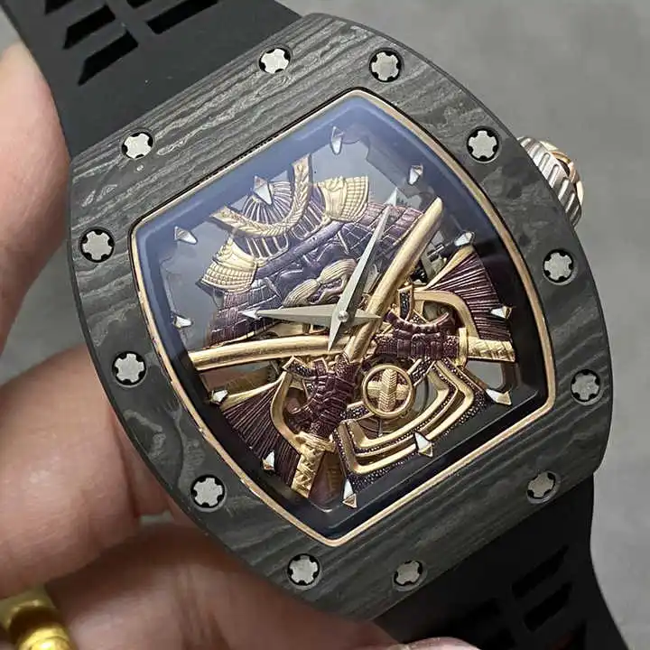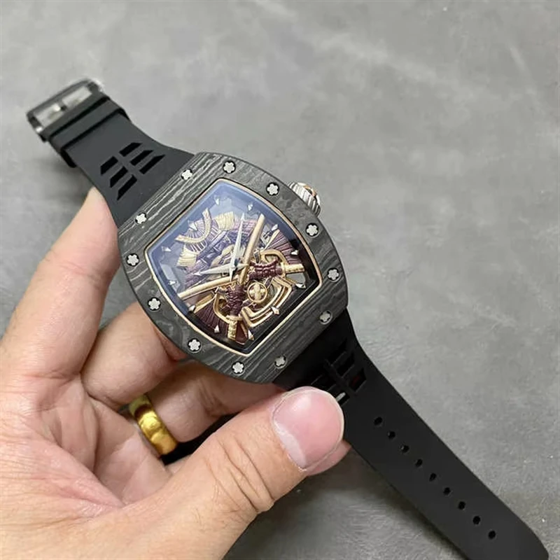 Nes Custom Edition 18K Gold Carbon Fiber Black Men's Mechanical Watch Luxurious Bucket-Shaped Case Tourbillon High-Quality Watch