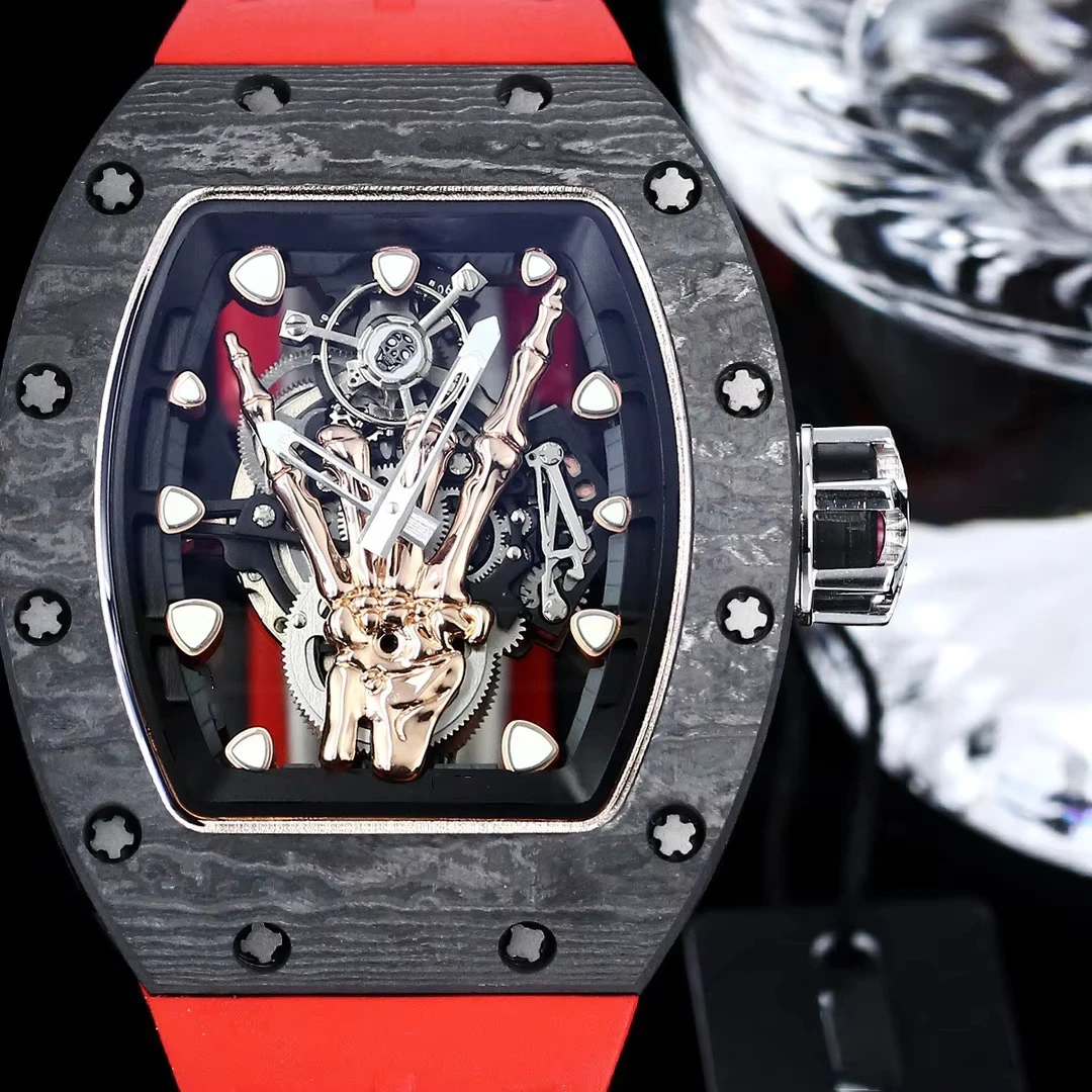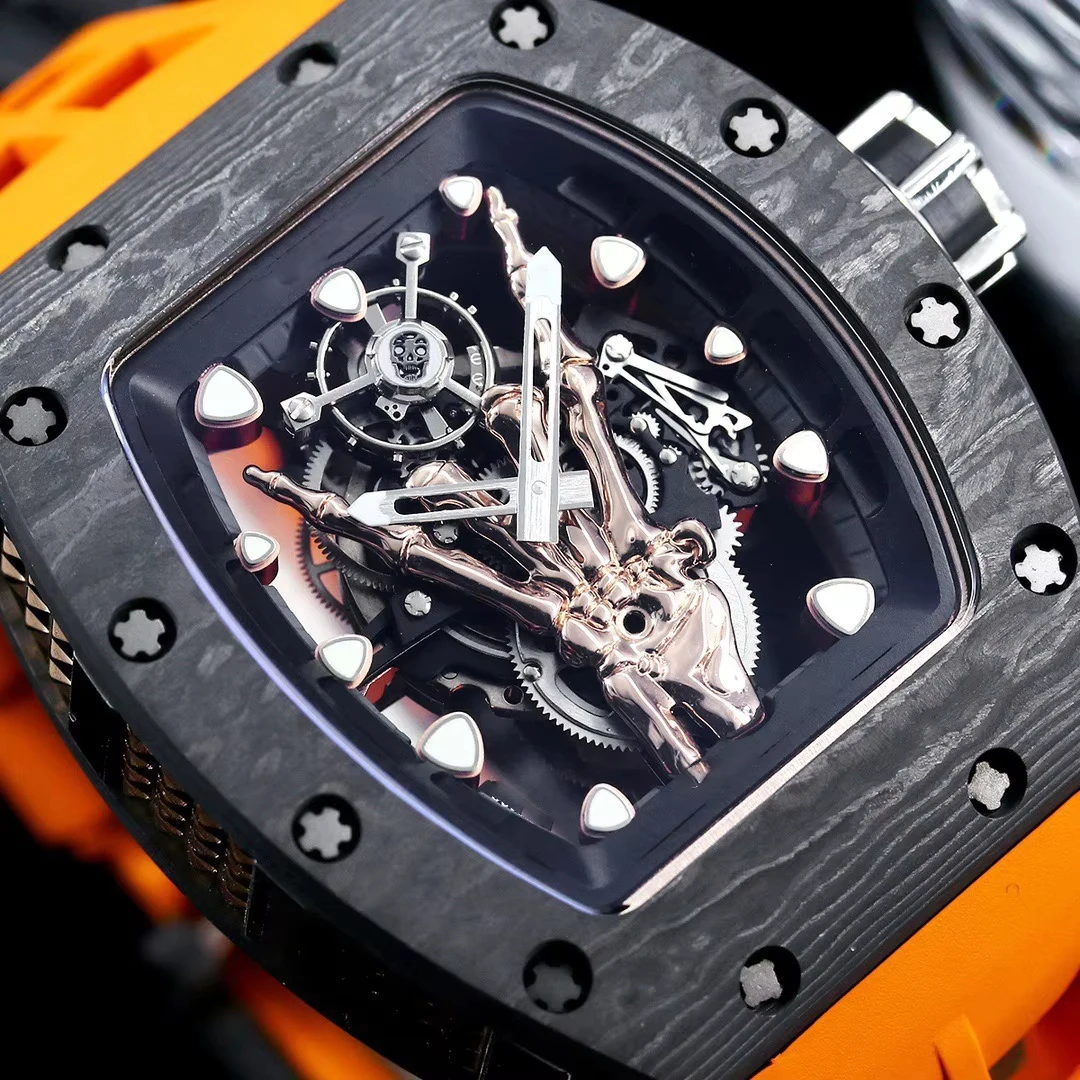 New High-quality, Fashionable Trendy Design Gold Men's Mechanical Watch Carbon Fiber case Tourbillon Waterproof Automatic Watch