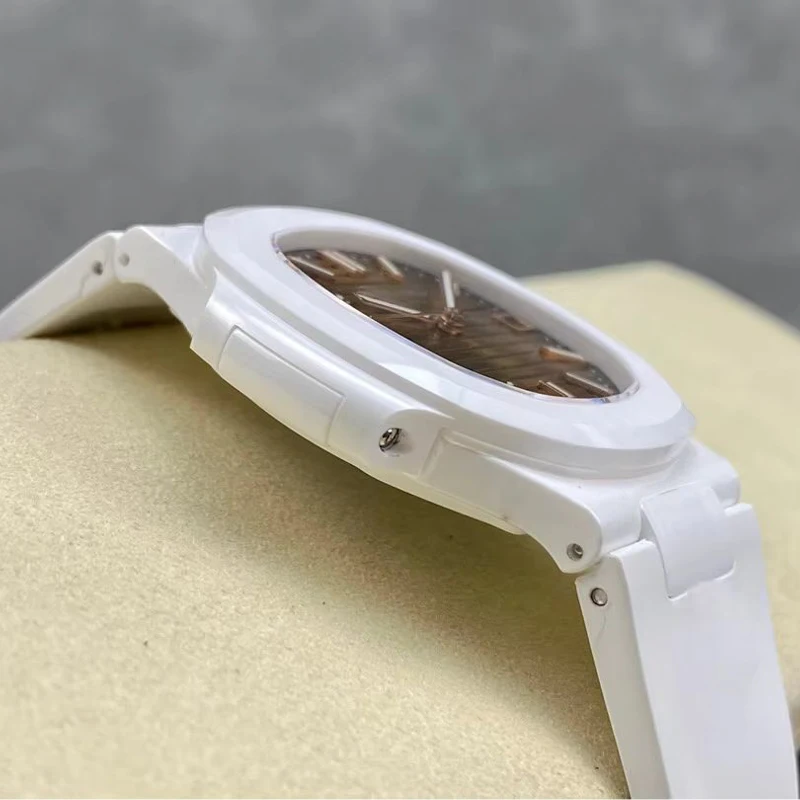 High Quality Trendy White Ceramic Rubber Strap Mechanical Watch Brown Dial Date Display Waterproof Retro Casual Business Watches