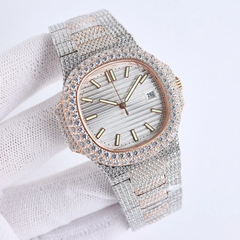 New Custom High-quality Business Fashion Diamond-encrusted Moissanite Men's Mechanical Watch Unisex Automatic Luxury Brand Watch