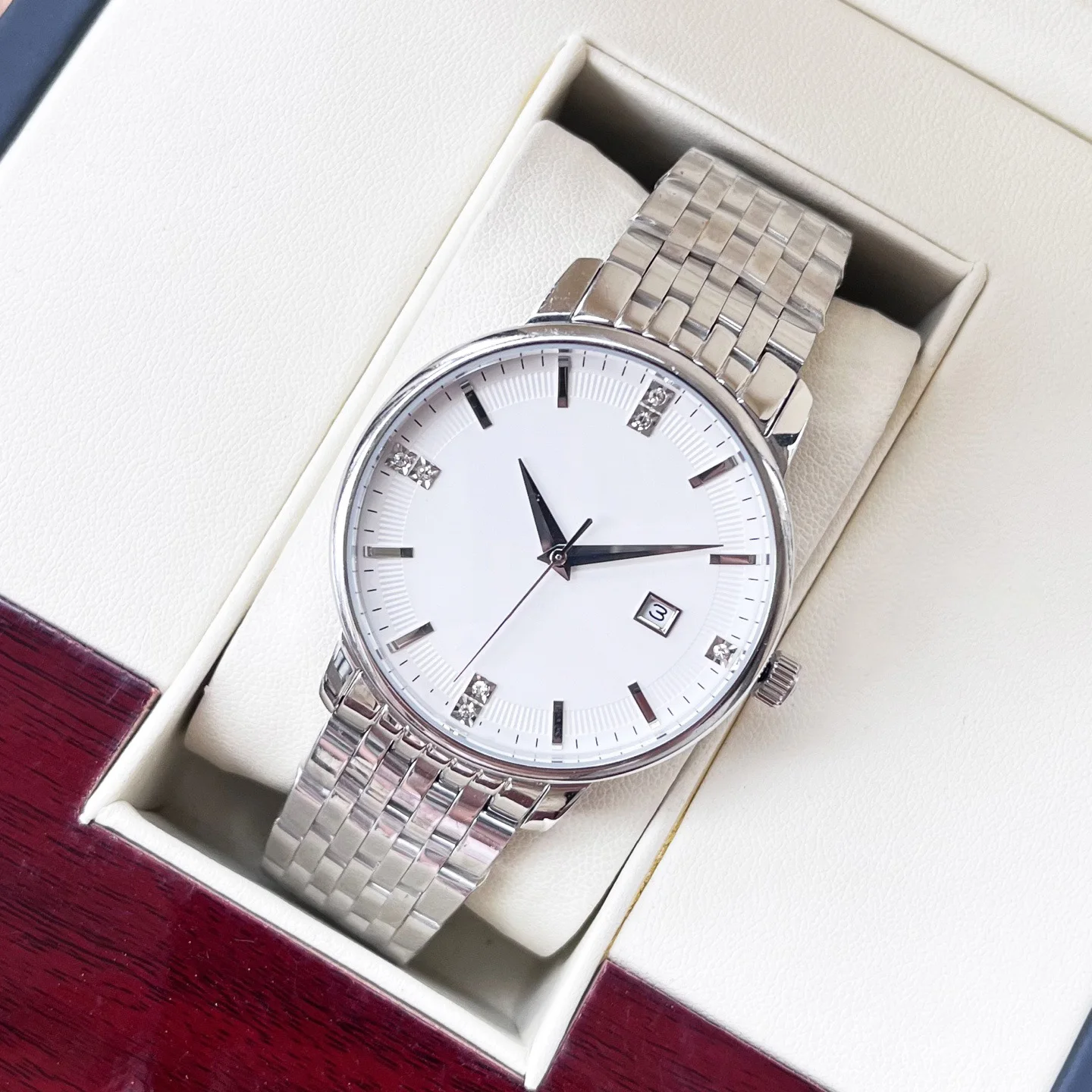 Skmei 9348 Luxury Charm Cartoon Auto Date Luminous Pointer Stainless Steel Strap Water Resistant Business Watch for Men
