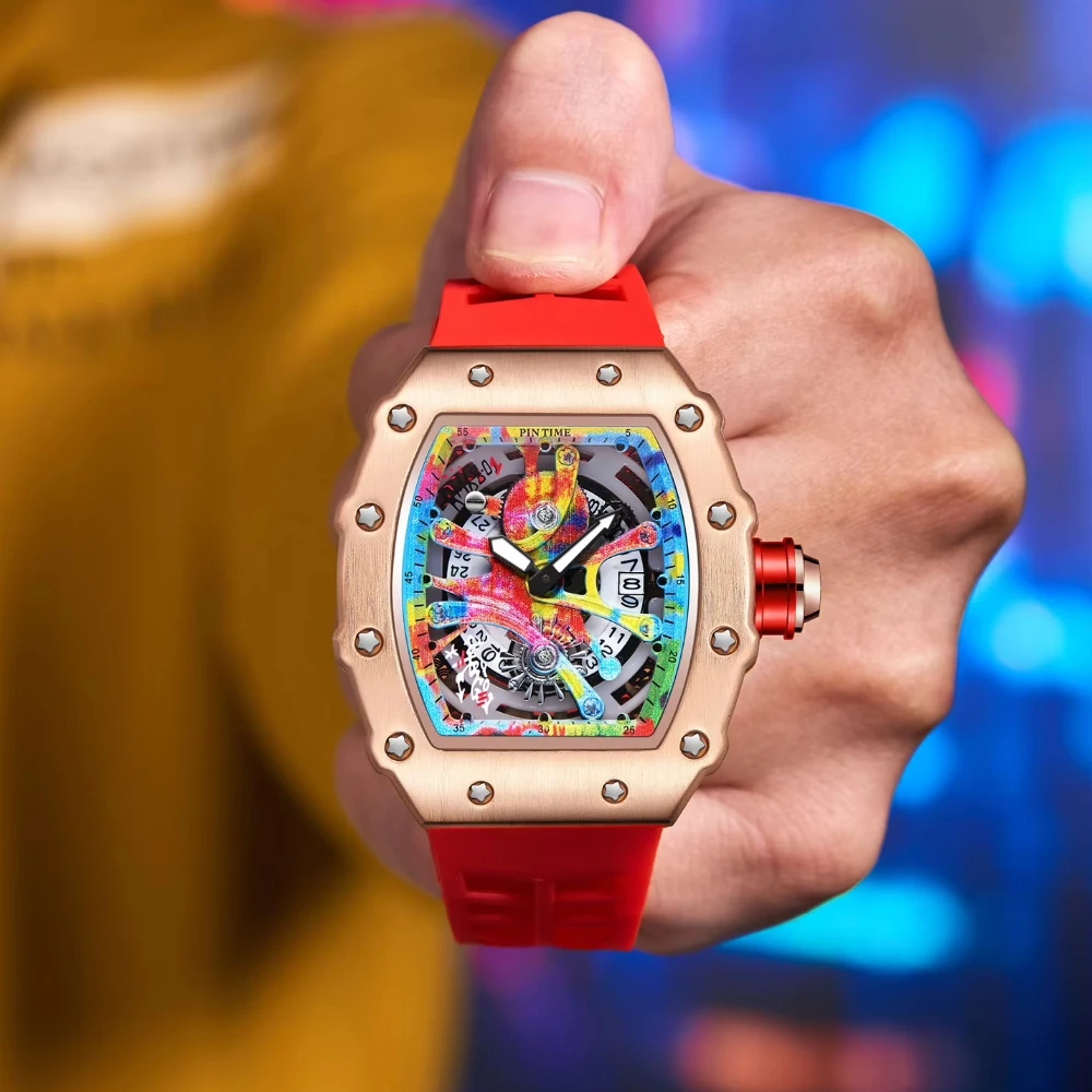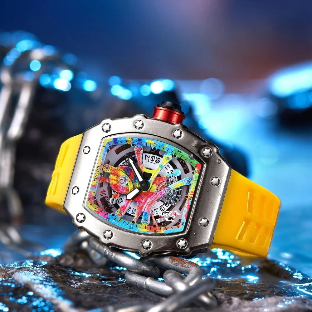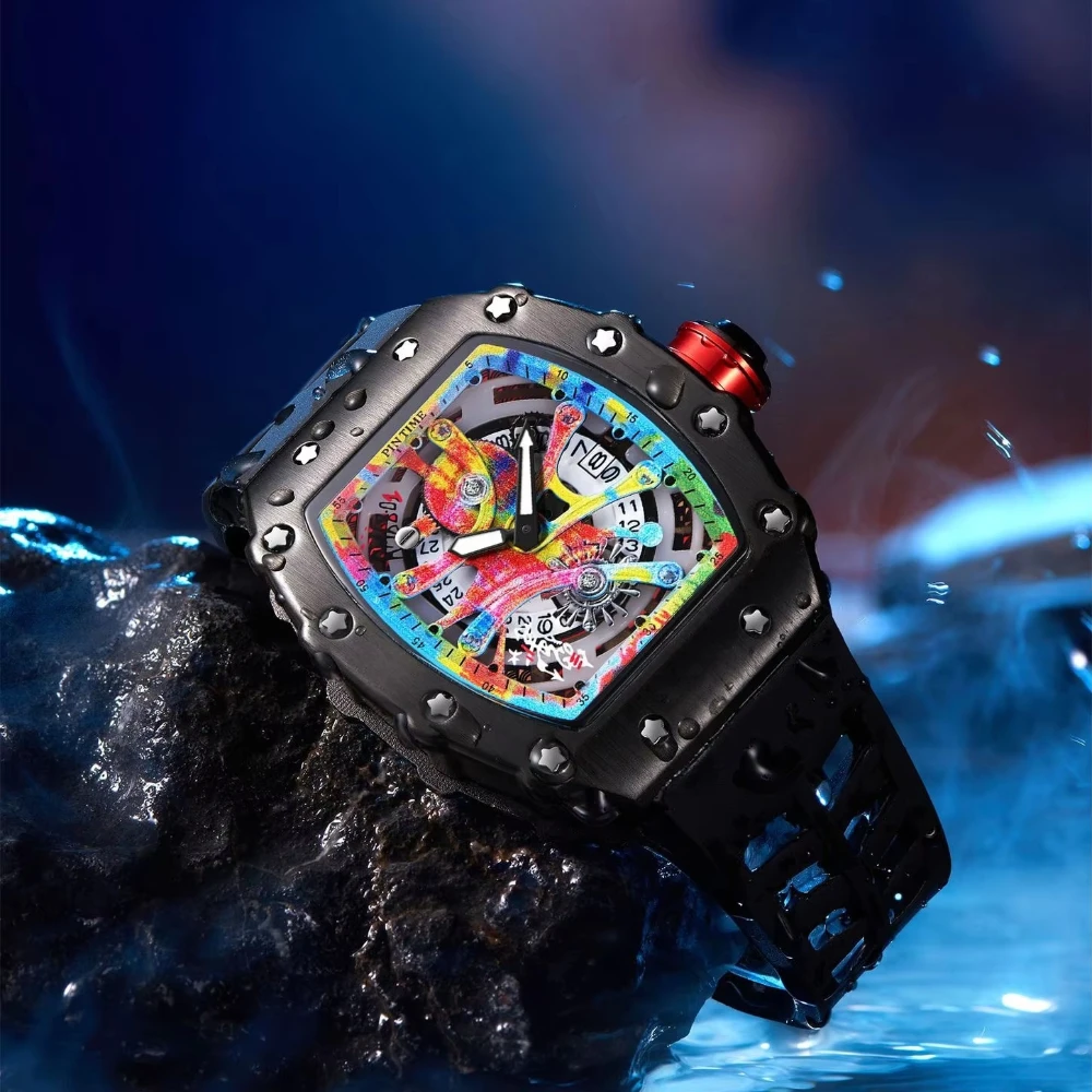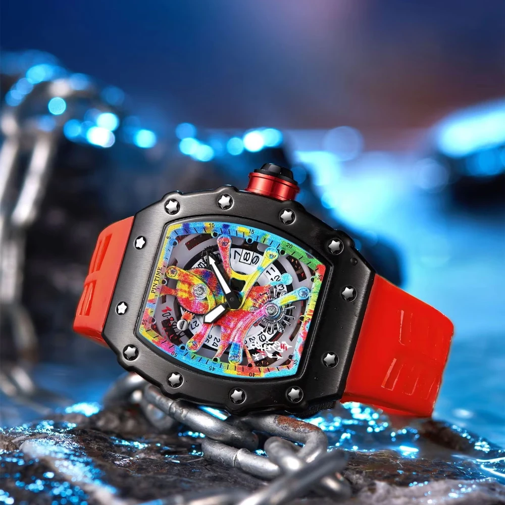 Unique Colorful Wristwatch Silicone Band Waterproof Popular Skeleton Hollow Fashion Men's Watches