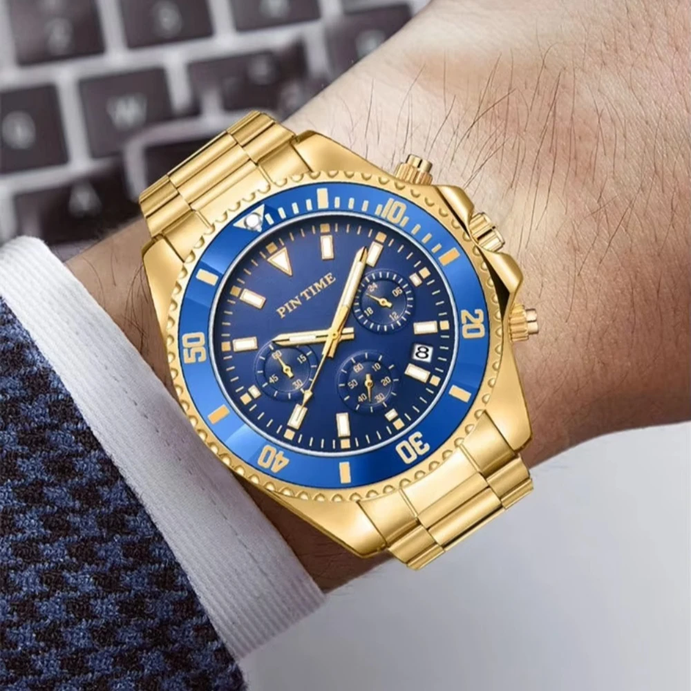 Fashion Luxury Stainless Steel Band Waterproof Men Wristwatches High Quality Male Quartz Gold Watches