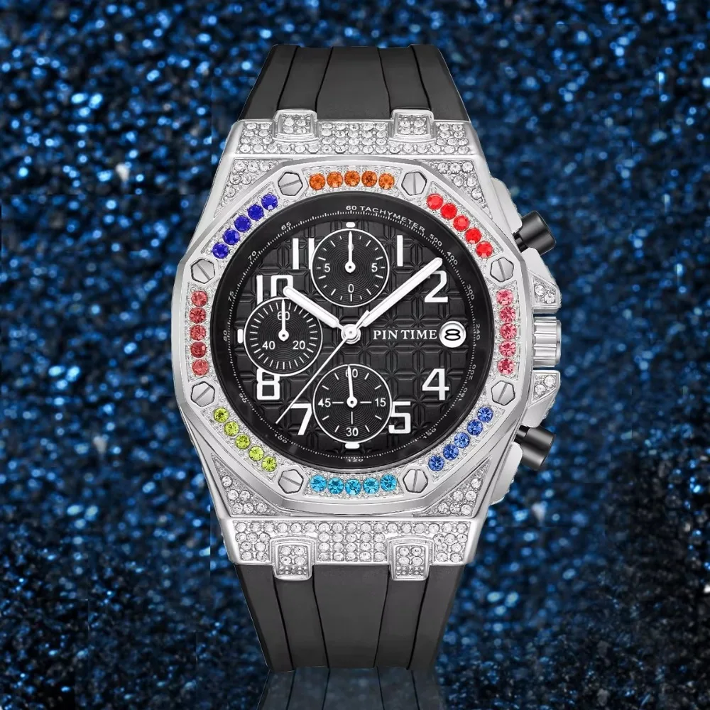 Luxury Cool Unique Diamond Watches High Quality Men Wrist Chronograph Quartz Bling Hip Hop Iced Out Watch