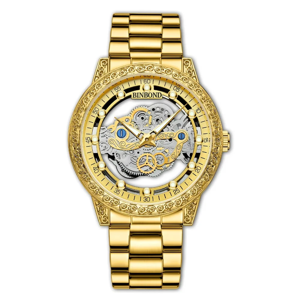 2026 Quartz Watch Movement Business Steel Watch Stainless Steel Strap Fashion Business Hollow Out Big Dial Watch for Men
