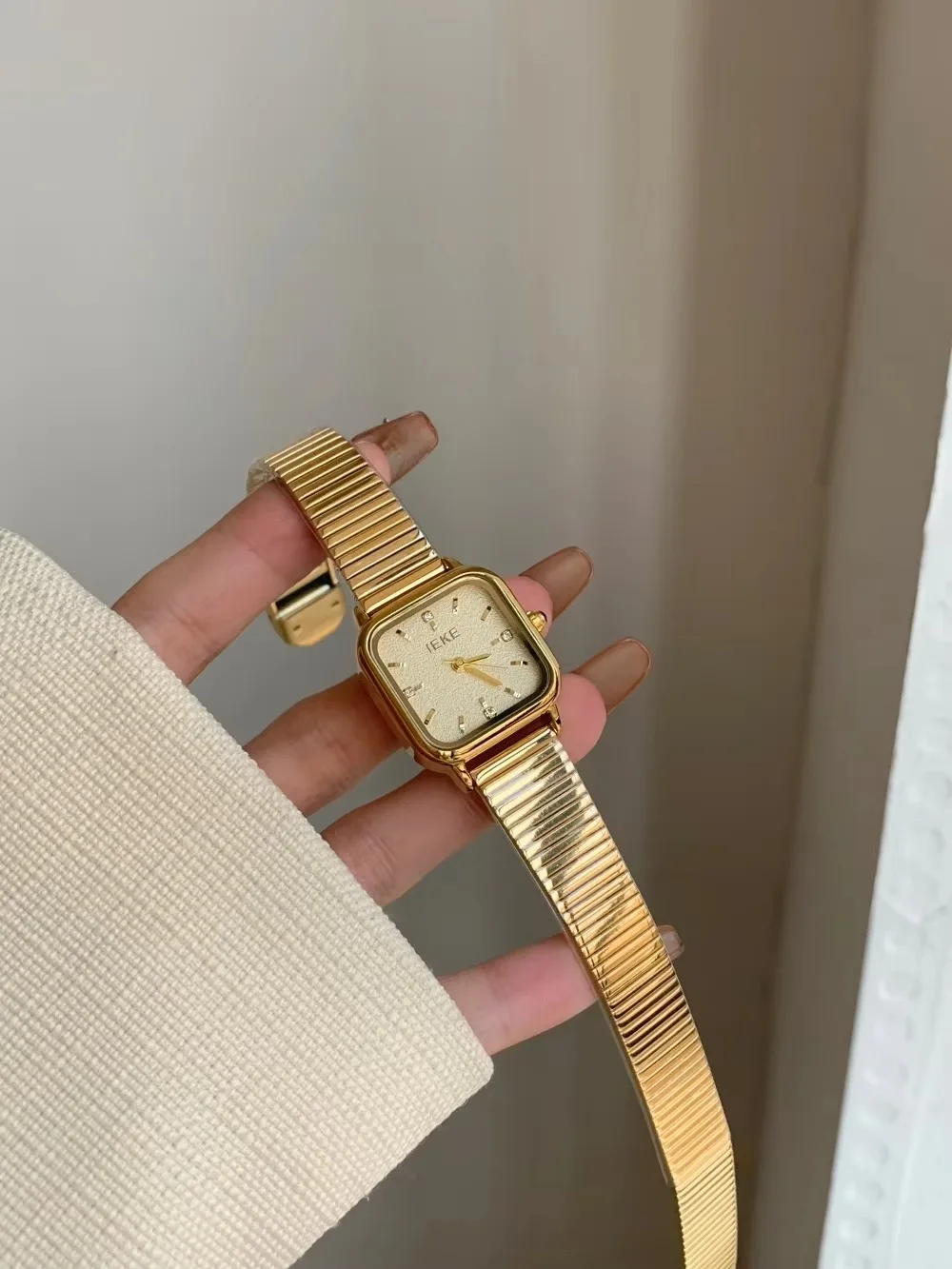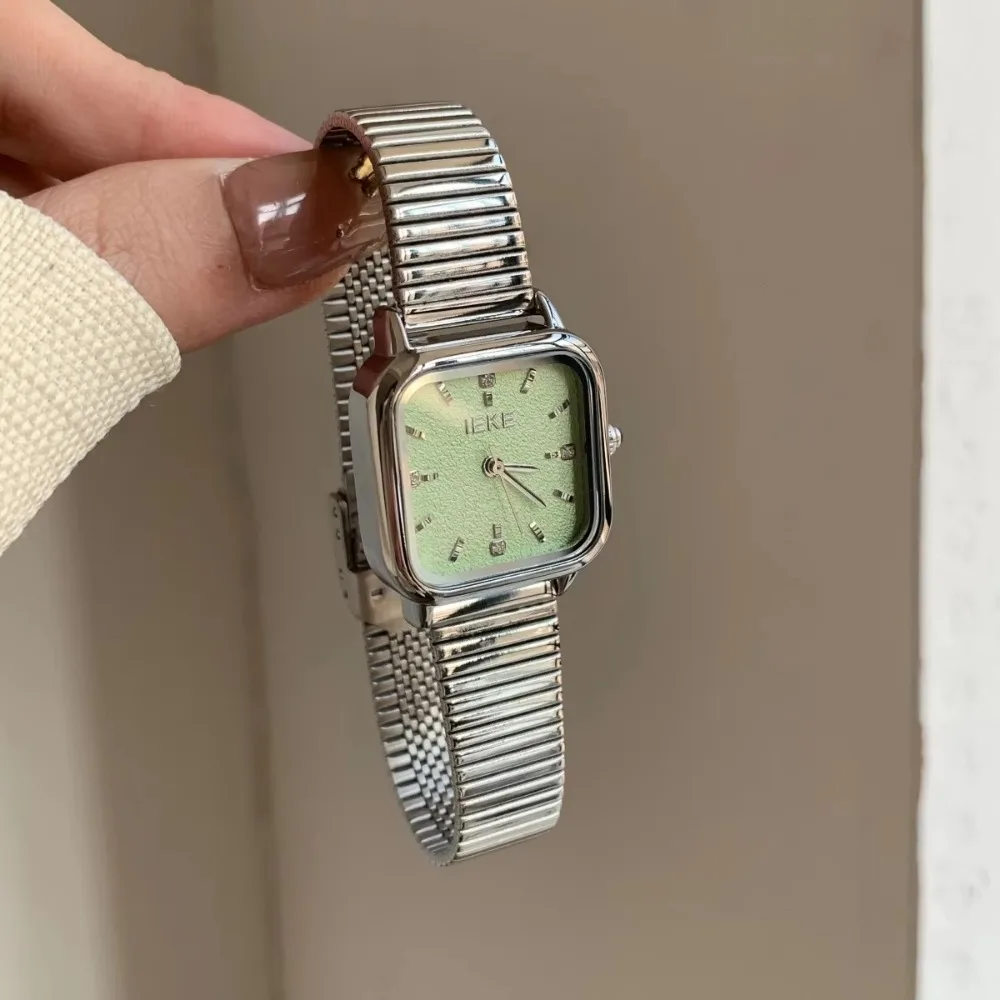 IEKE Retro Medieval Style Gold Arsenal Women Watch Gray Small Square Steel Strap Simple Watch for Women