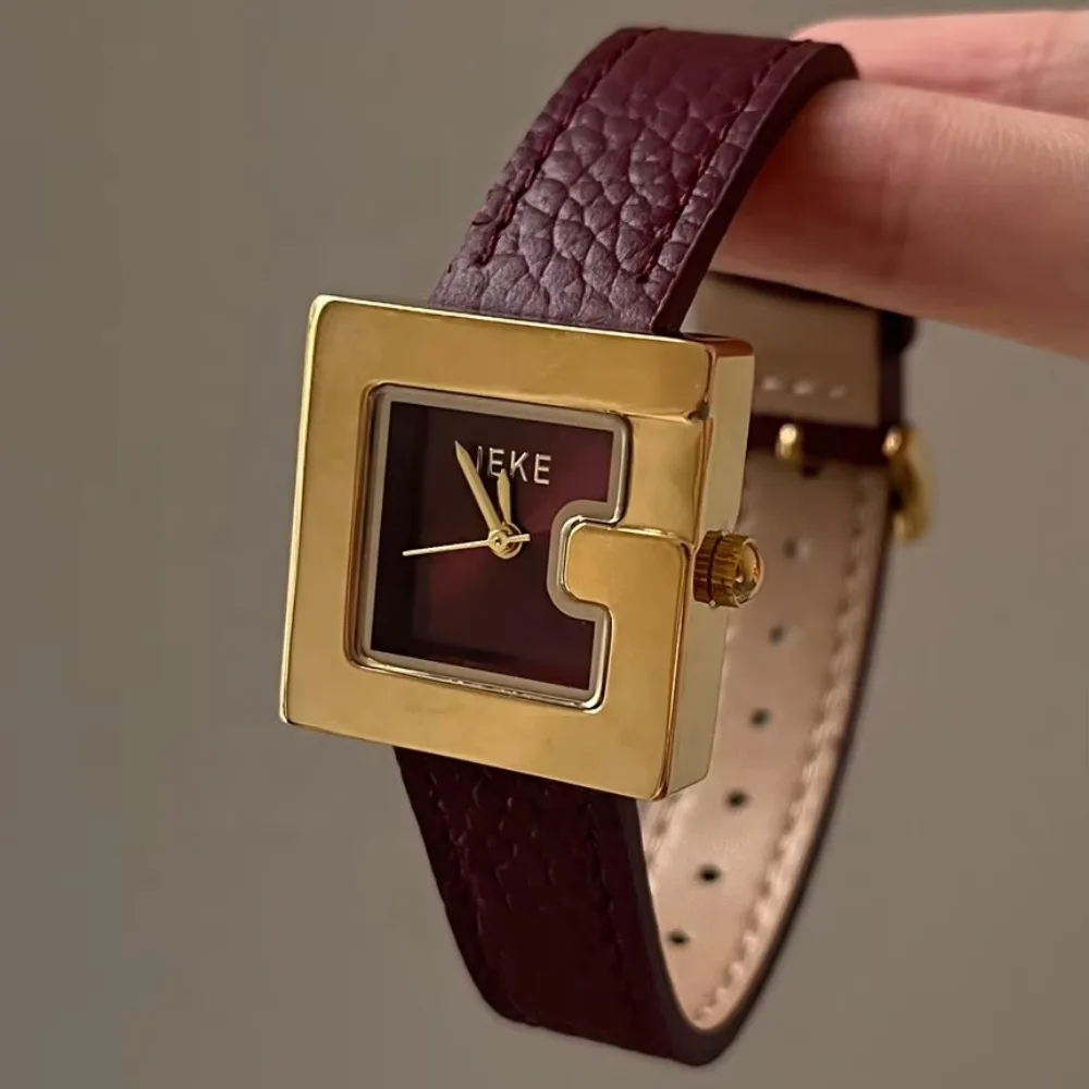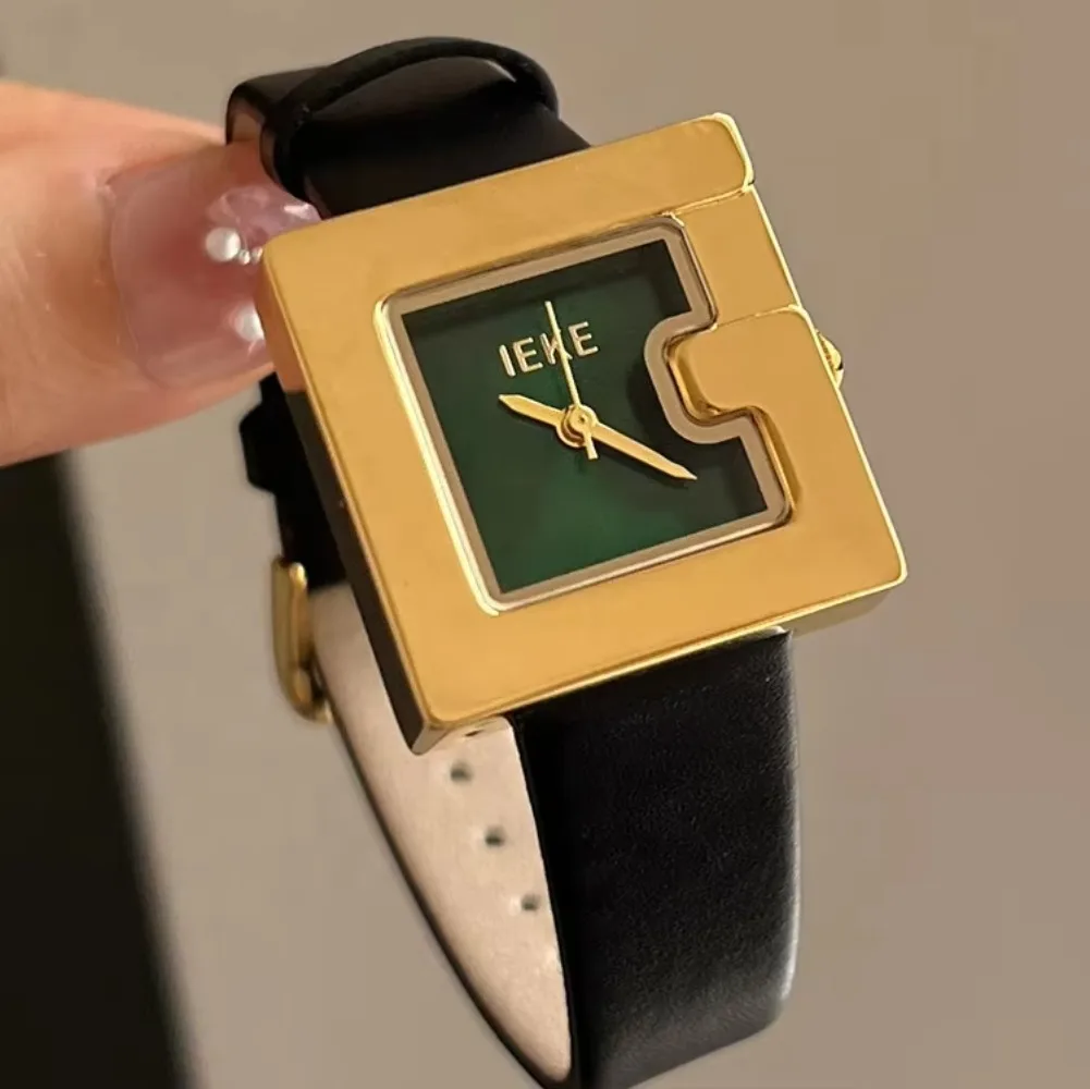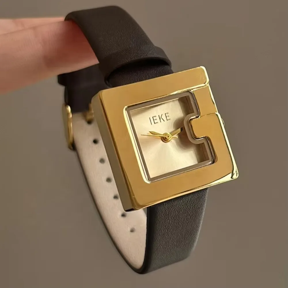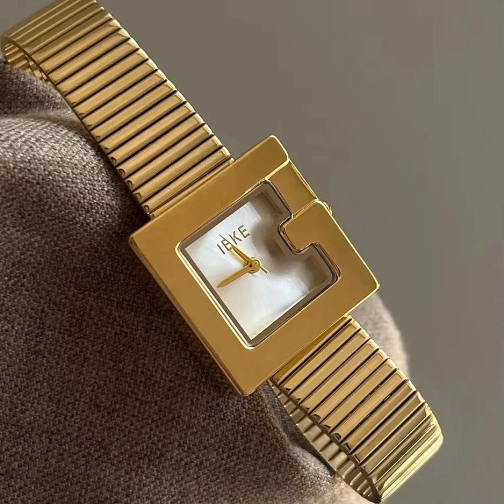 IEKE New Gold square Textured Small G-dial Ladies Watch Retro Metal Band Watches for Ladies Fashionable Watch for Women