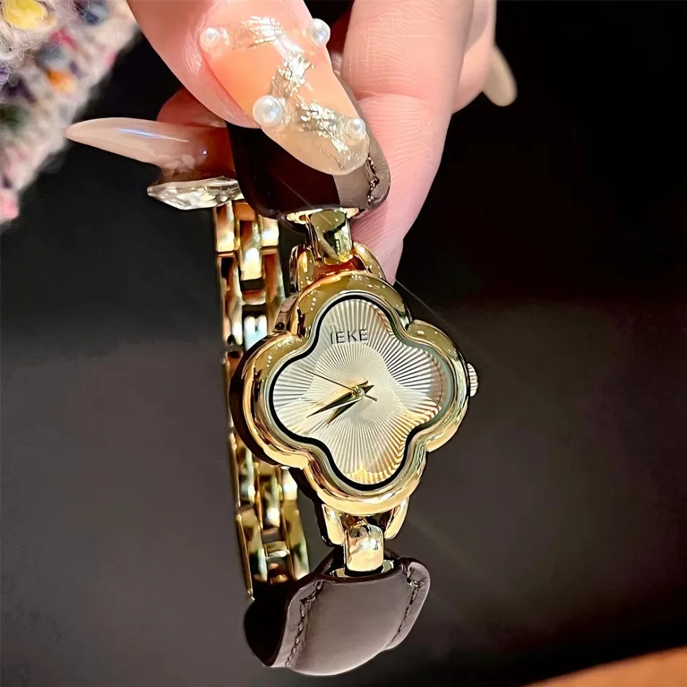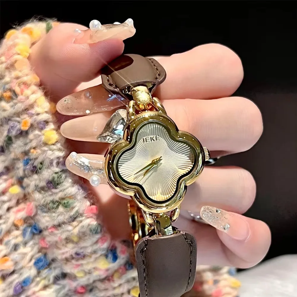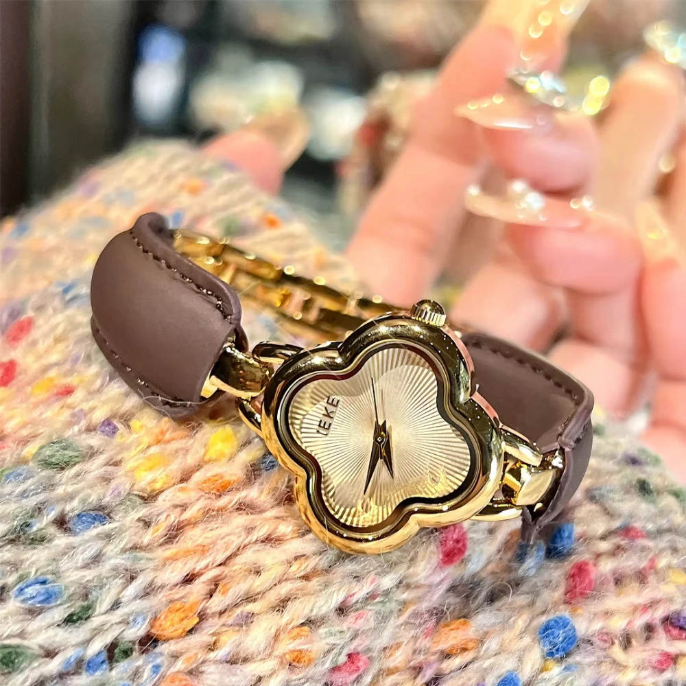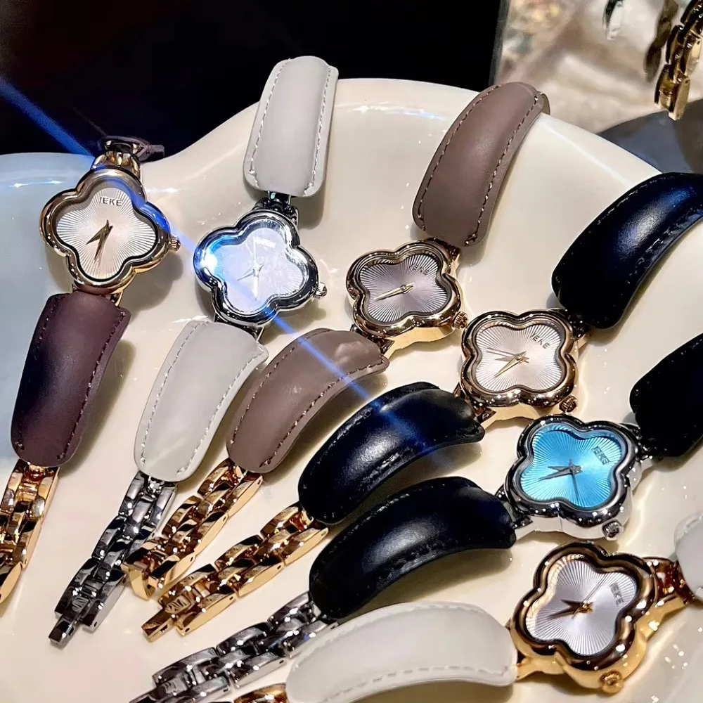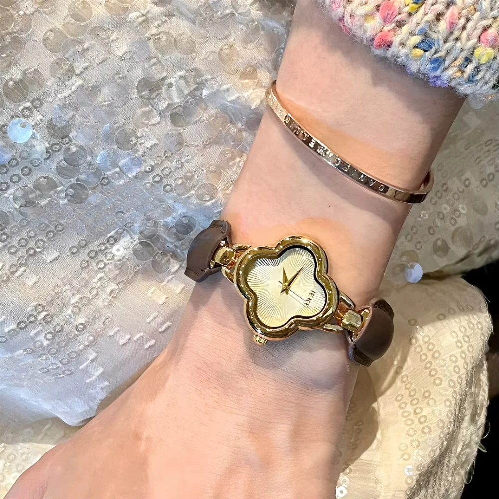 New Vintage Four-leaf Genuine Leather Bracelet Fashion Women Watch luxury Bracelet Watch for Women and girlfriend