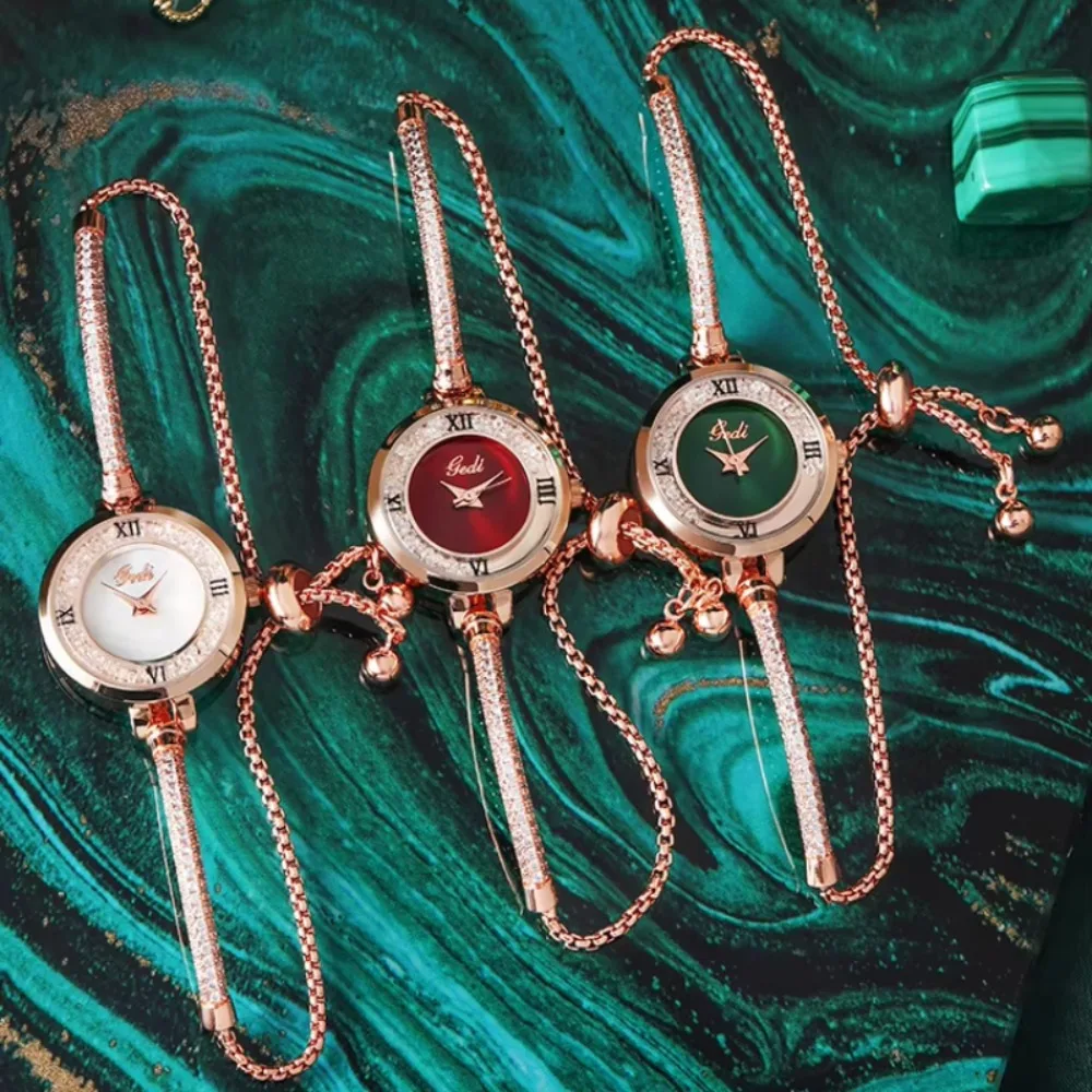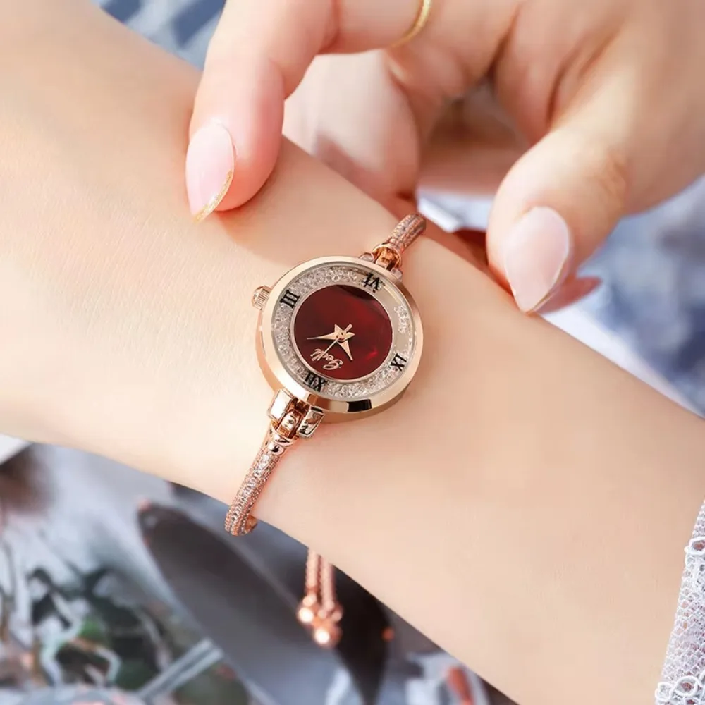 Luxury Watch for Women Fashion Alloy Band Round Watch Diamond Zircon Bracelet Retractable Adjustable