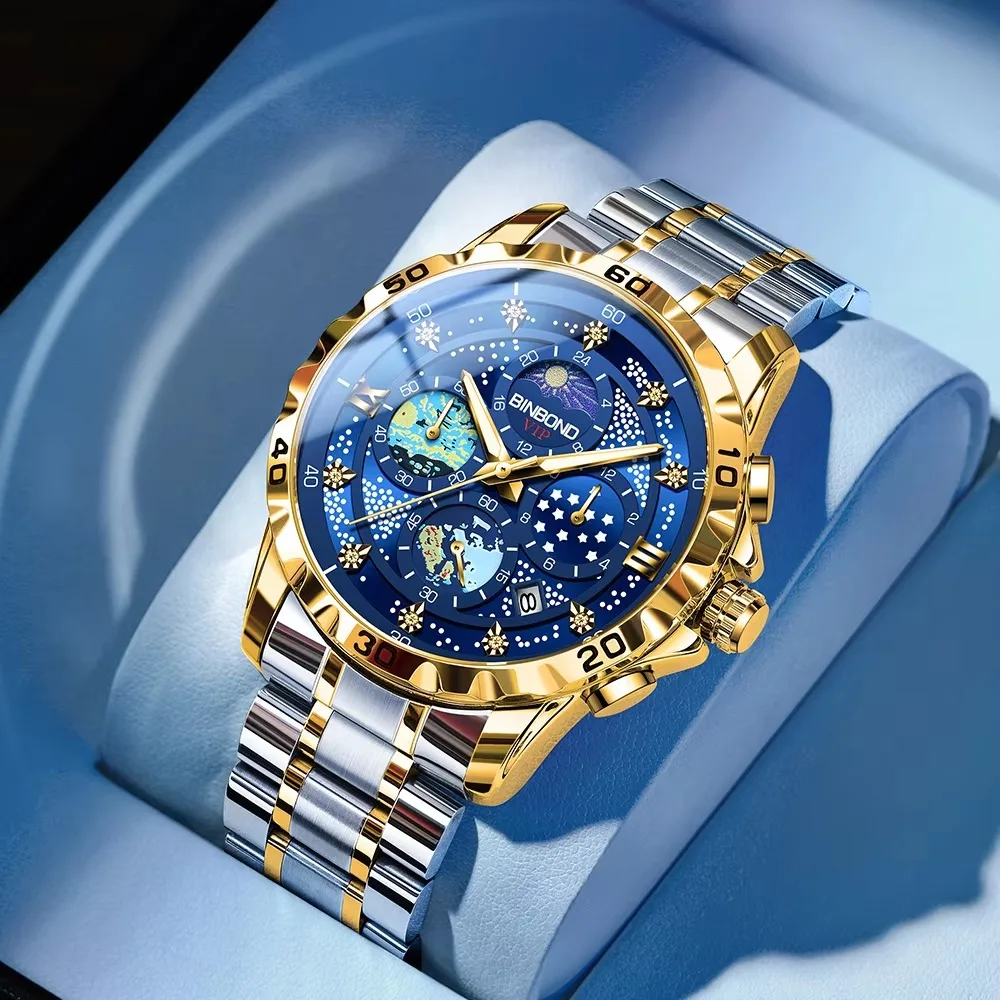 OEM ODM Wrist Quartz Chronograph Watch BINBOND 3225 Luxury Watch Luminous Waterproof Week Date Man Wristwatch