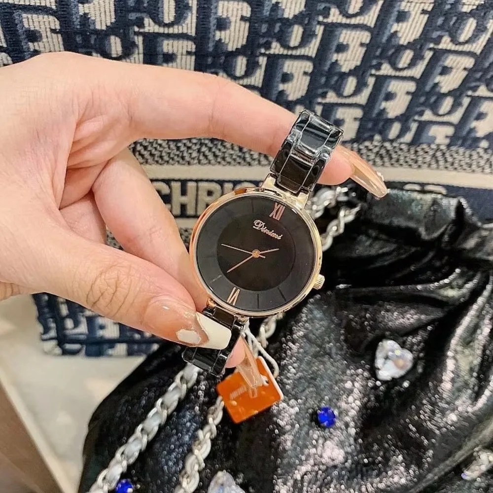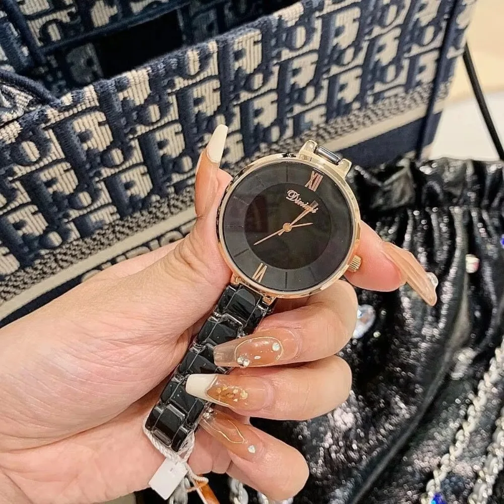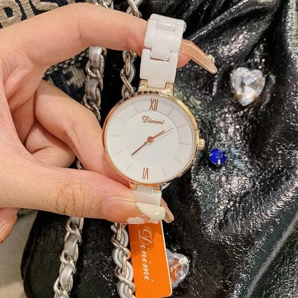 Dinimi New Design Women's Trendy and Fashionable White Ceramic Strap Wristwatch with a Simple and Elegant Style