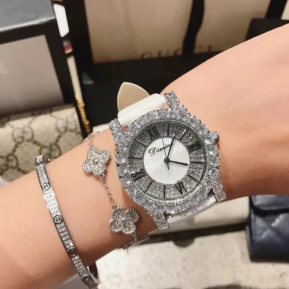 High Quality DINIMI Women's Watch New Design Fashion Casual Ladies Watch Leather Strap Quartz Diamonds Watch