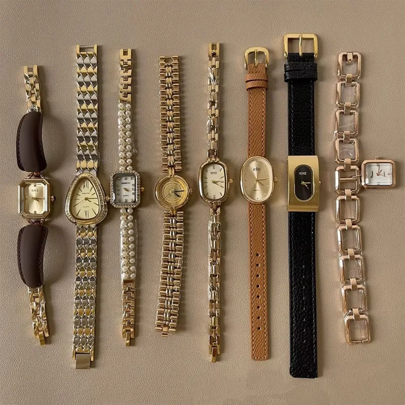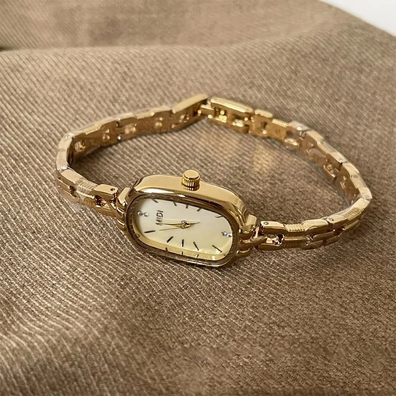 Luxury Vintage Women Watch Gold Leather Band Elegant Oval Quartz Watch for Woman Design Reloj Bracelet Business Antiques