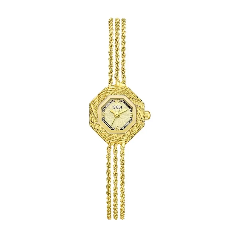 2026 GEDI New Vintage Women's Watch Tassel Bracelet Watch with a Compact and Exquisite Octagonal Design Gold Plated Bracelet
