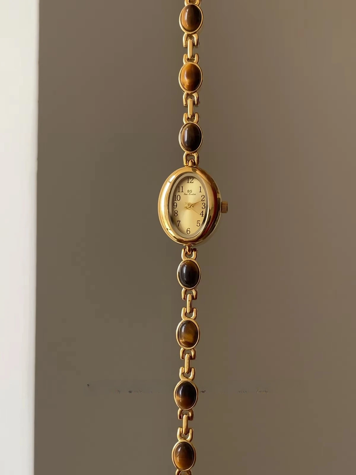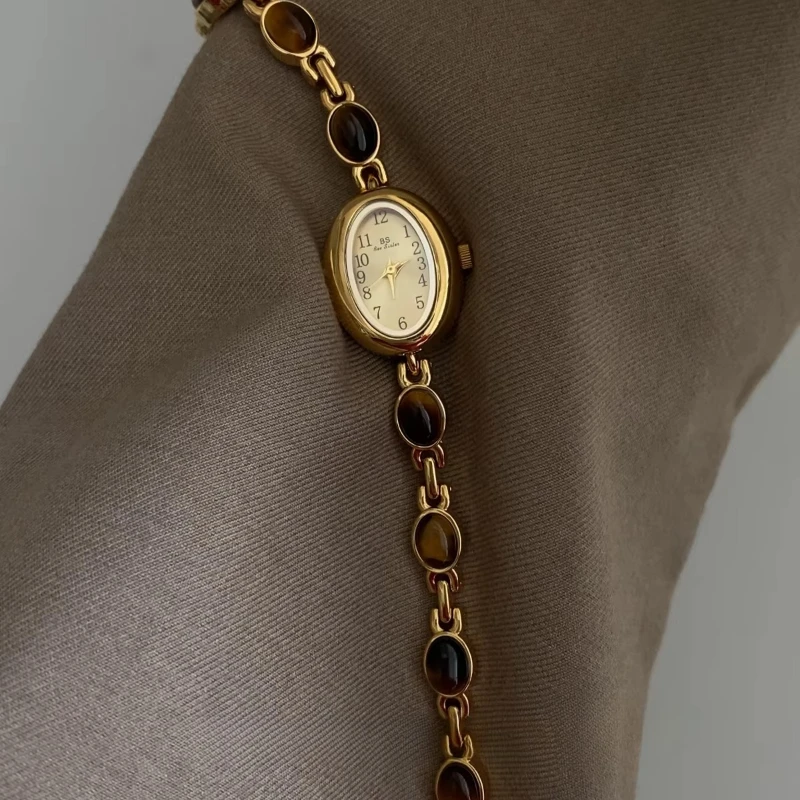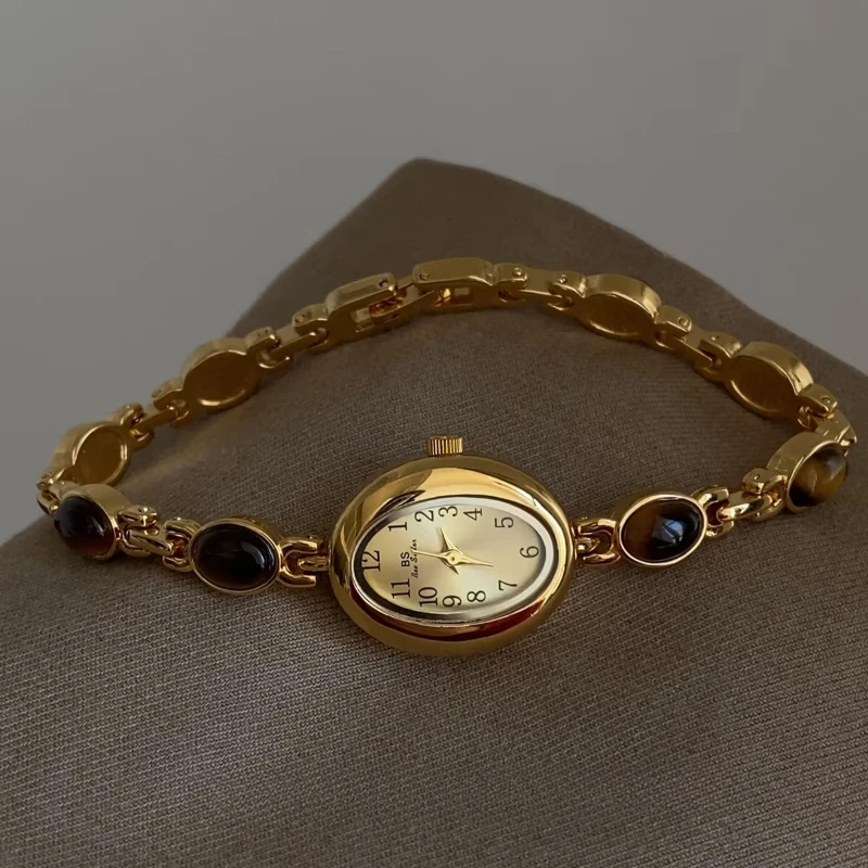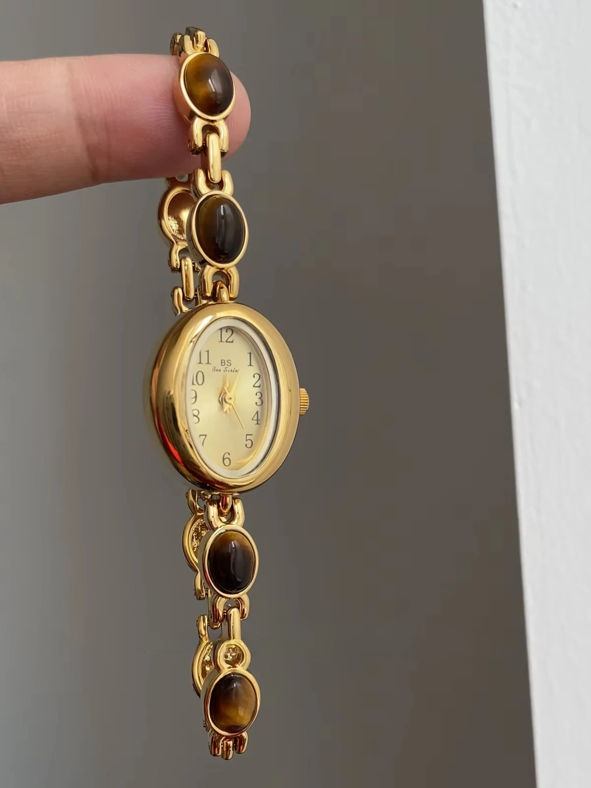 BS Bee Sister Women's Watch with Gemstone Inlay, Niche, Tiger Eye Maillard French Vintage Watch Retro Women's Quartz Watch