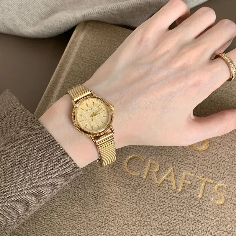 IEKE Women's Watch Exquisite Pattern Small Dial with Light Luxury Stainless Steel Bracelet Alloy Case