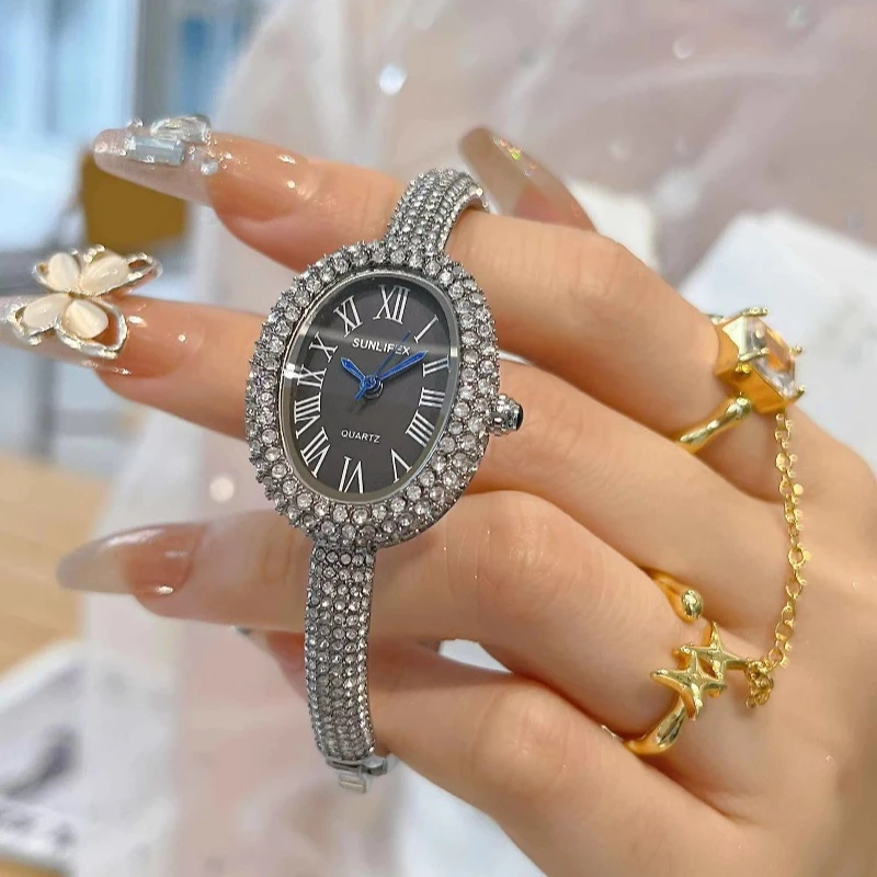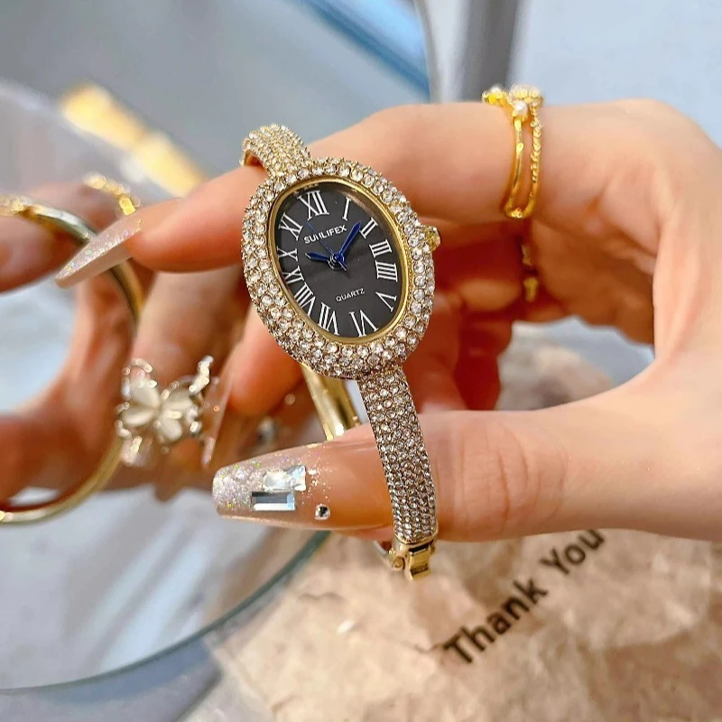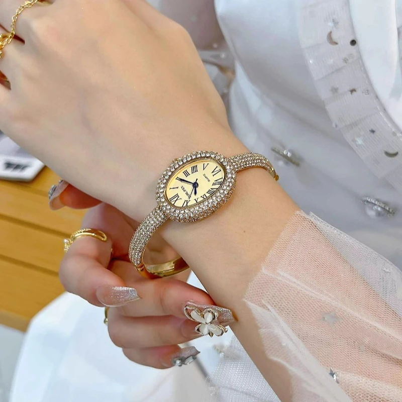 New Oval Vintage Watch Full Diamond Women Watch Luxury Classic Design Custom Logo Quartz Watch for Women