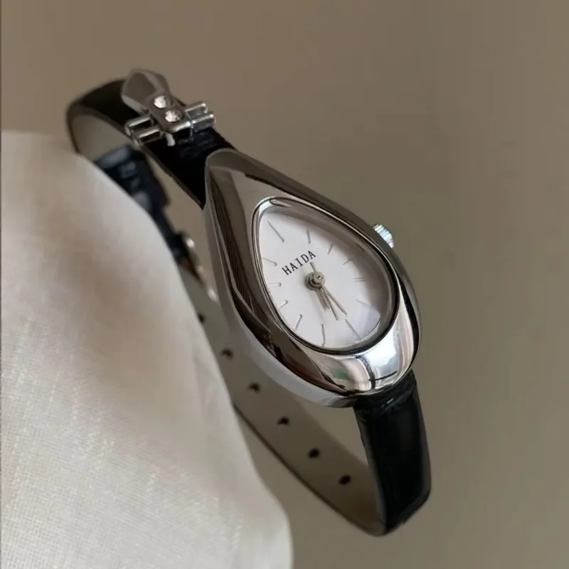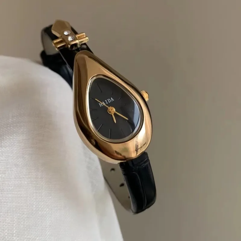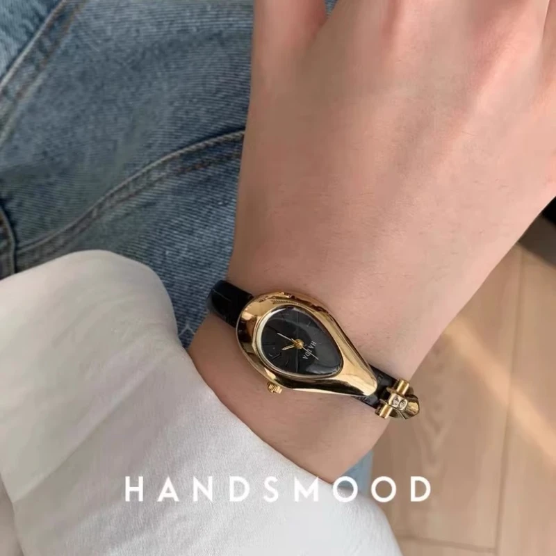 2005 New Women Quartz Watch Unique Design Genuine Leather Luxury Quartz Vintage Stainless Steel Gold Lady Bracelet Gift