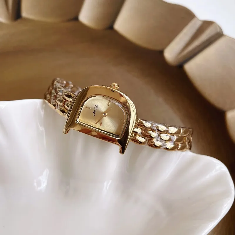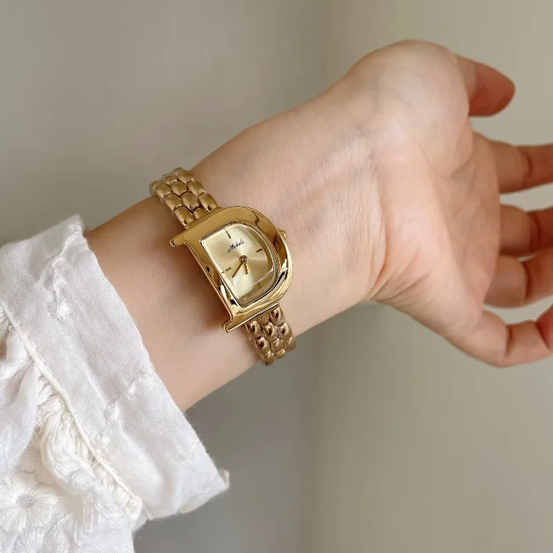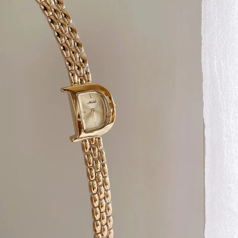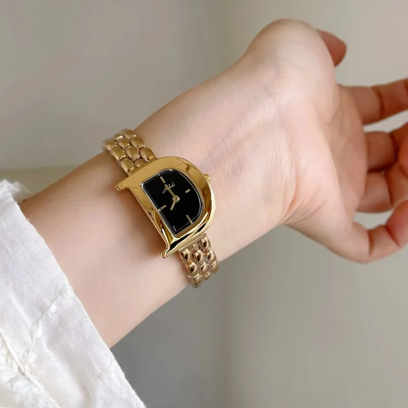New Hot Selling Women Watch with Letter D Shape Stylish Golden Medieval Female Watch High-end, Elegant, and Noble Watch