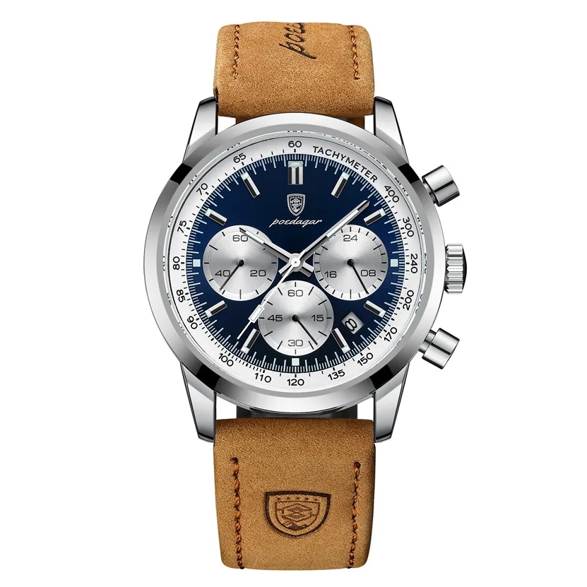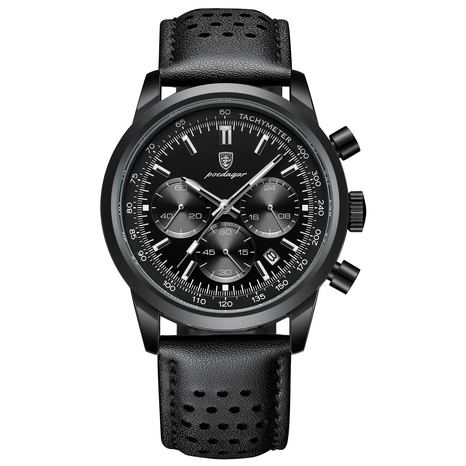 Man Watch Top Brand Sport Chronograph Quartz Watches Leather Waterproof Wristwatch Montre Homme