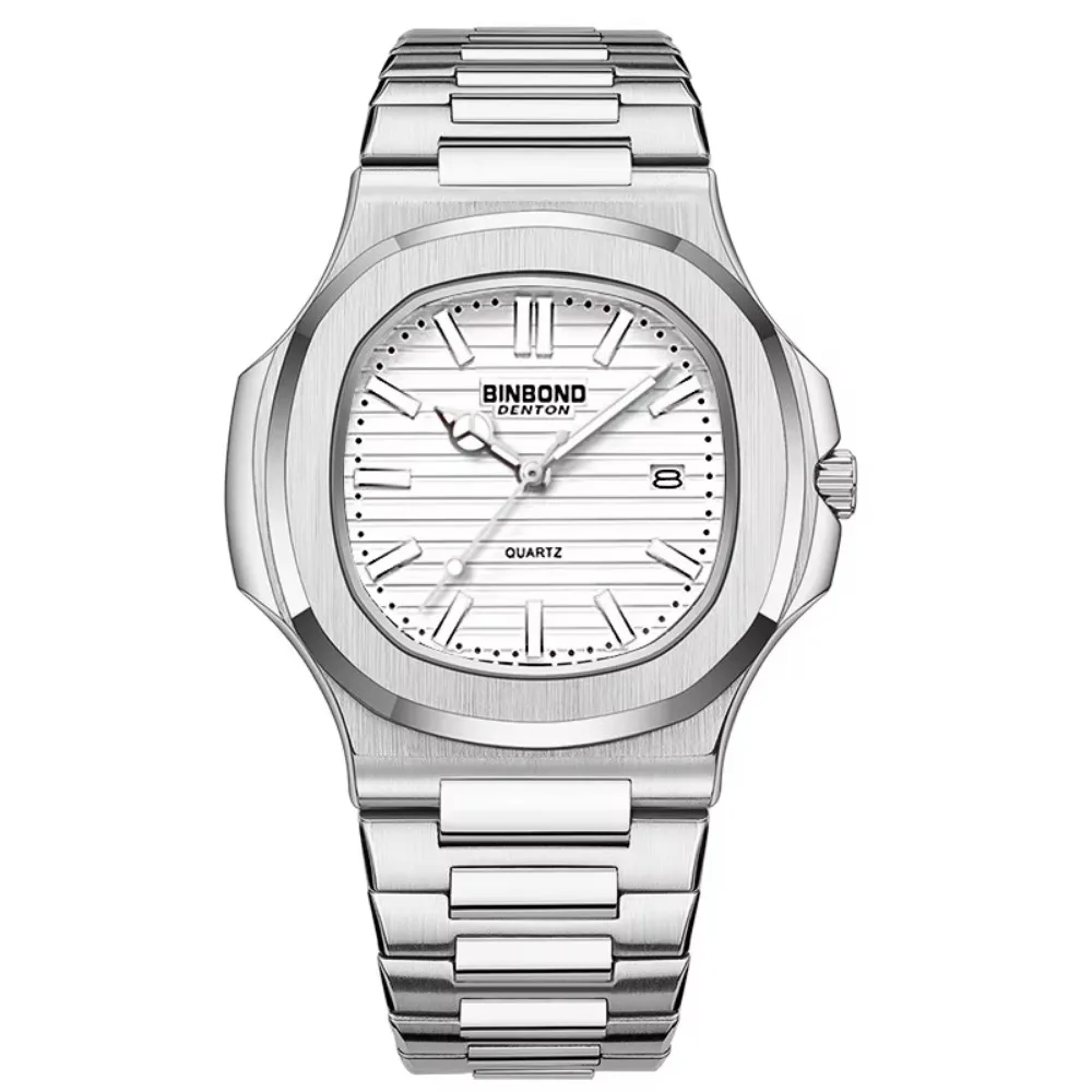 Men's Minimalist Stainless Steel Band Quartz Watch Waterproof S Alloy Case Waterproof Luminous Hands Calendar Watch