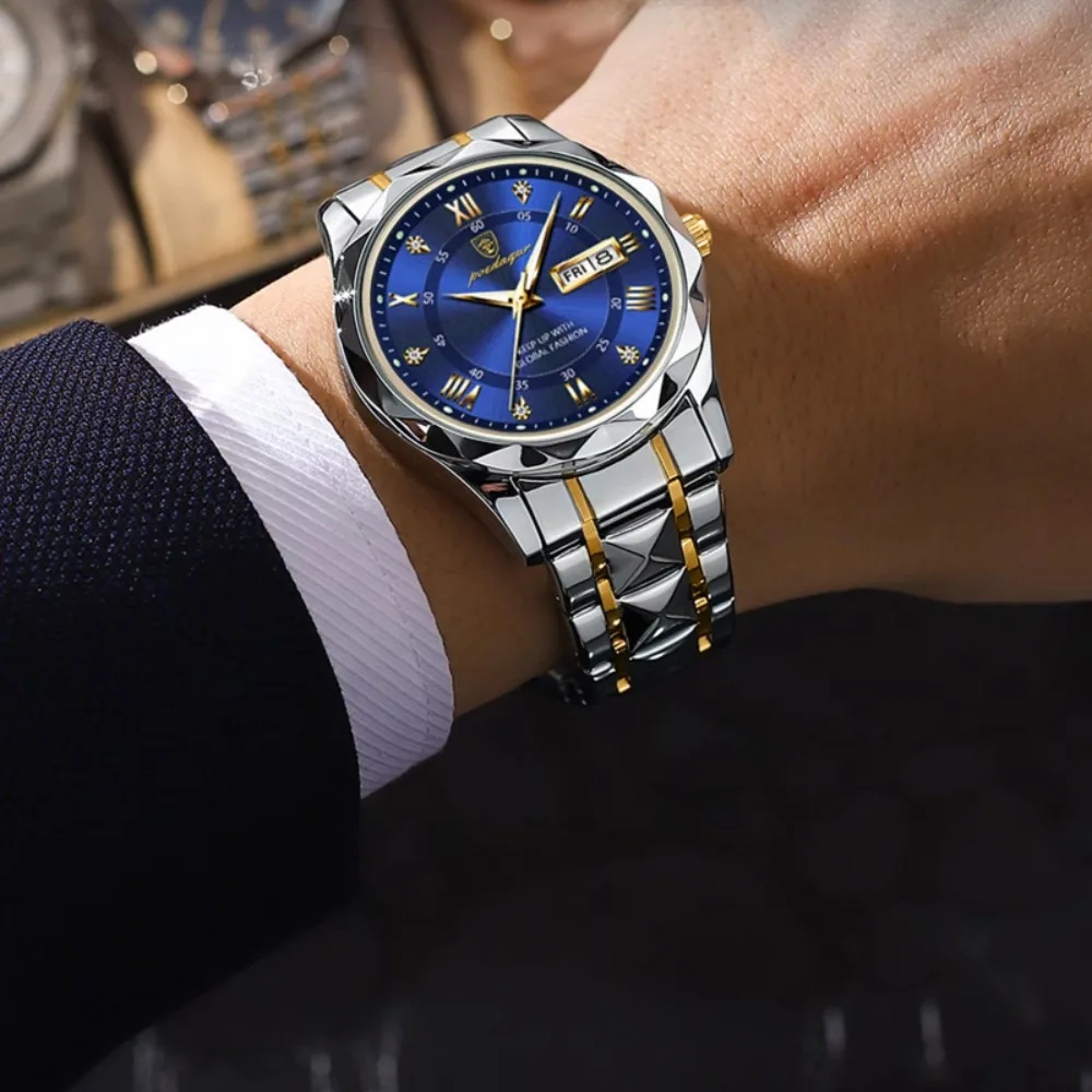 POEDAGAR 615 Hot Sale Quartz Watch for Men Date Week Hour Clock Fashion Irregular Design Luxury Sport Watch Men Gift