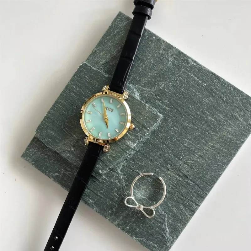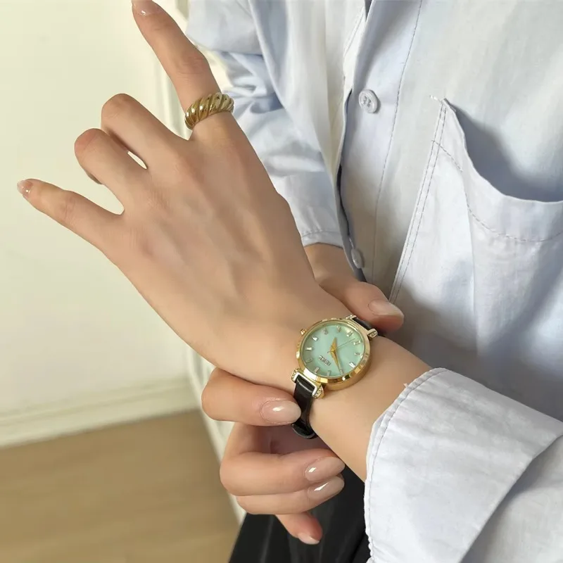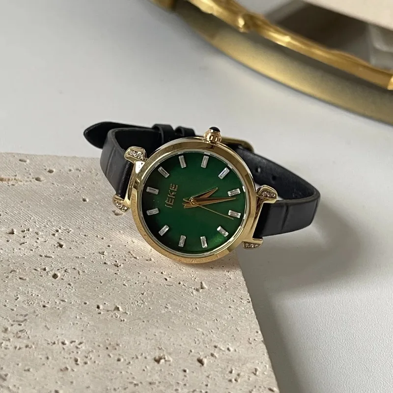 IEKE Green Quartz Watch for Girls Literary and Artistic Fresh and Chic Thin Strap Female Watches