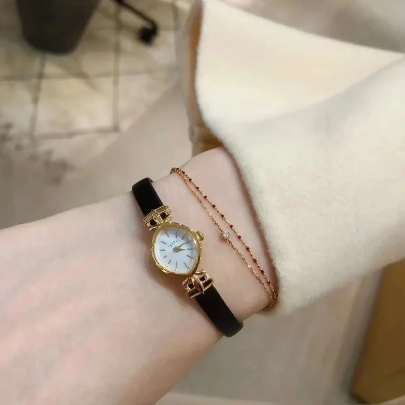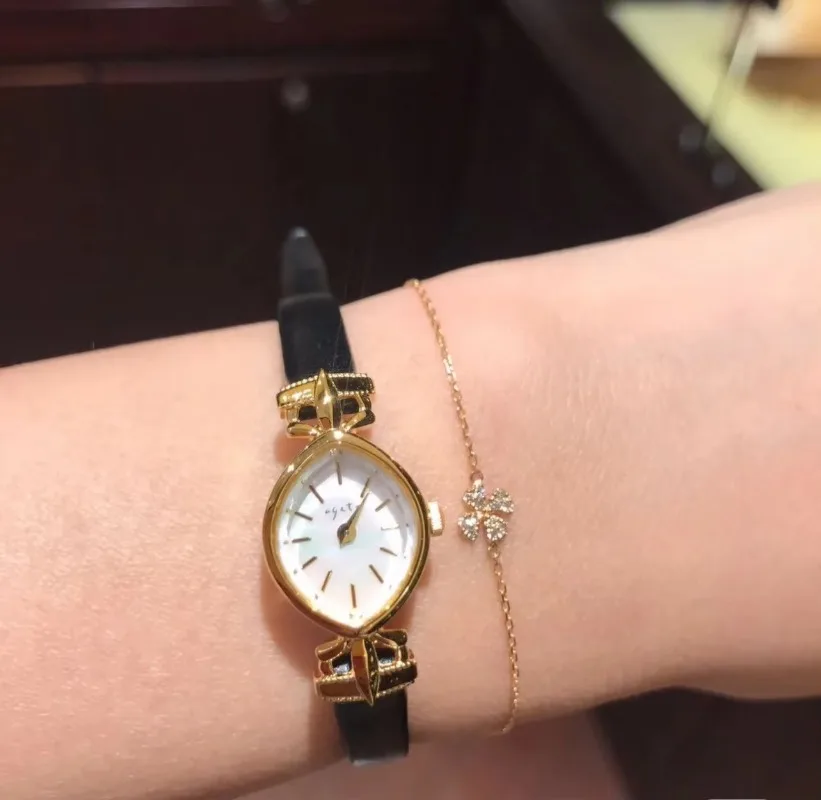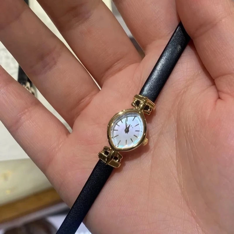 Hot Selling Genuine Leather Black Belt Watch Elegant Simple Women's Watch Commuter Natural Shell Pearl Bracelet Watch For Women