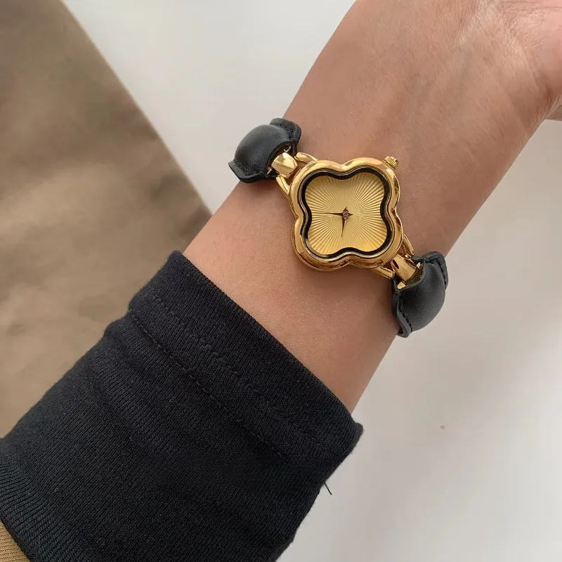2026 New Vintage Women's Watch with Four Leaf Design Bracelet Watch Retro Fashion Temperament Quartz Watch For Ladies