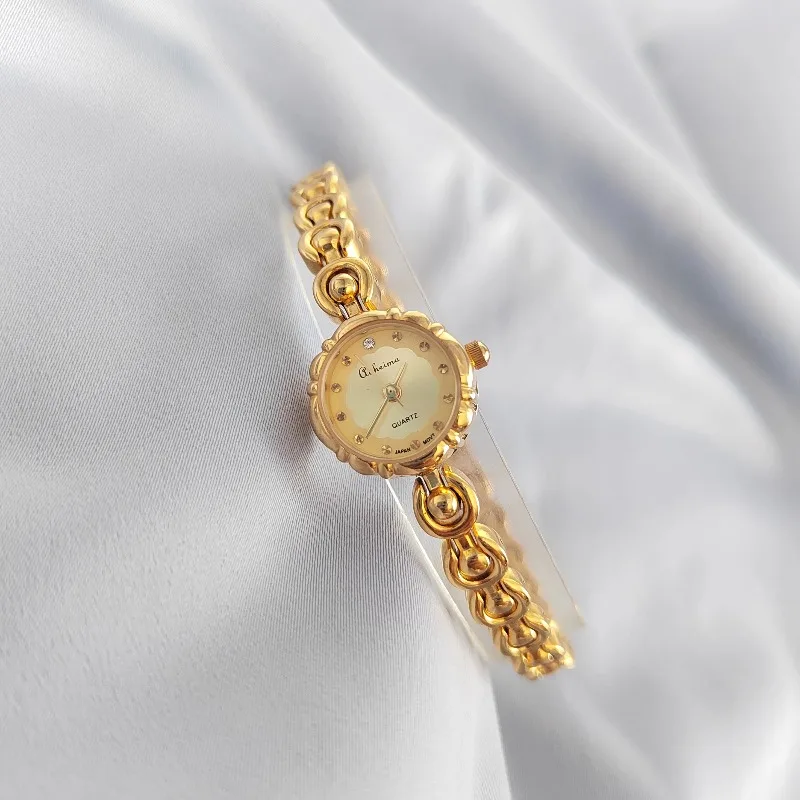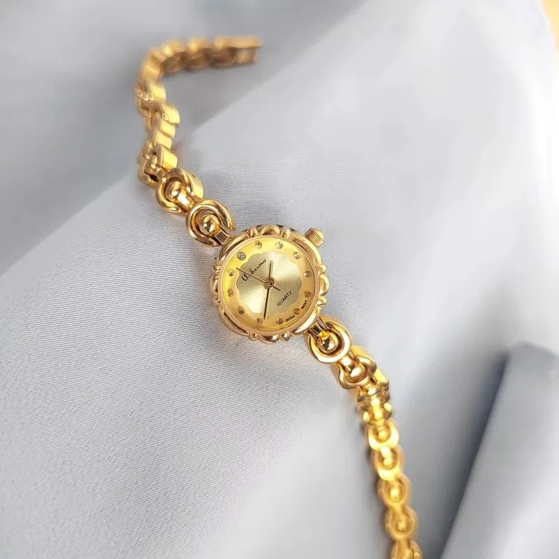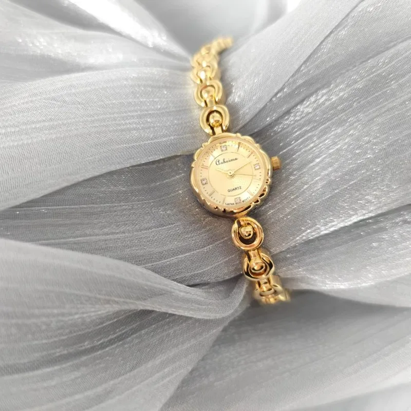 2026 New Fishonable Women's Gold Bracelet Niche Light Luxury Mini Flower Shaped Japanese Movement Retro Vintage Watch
