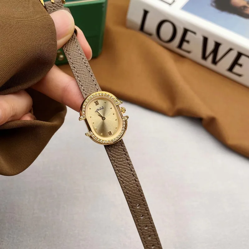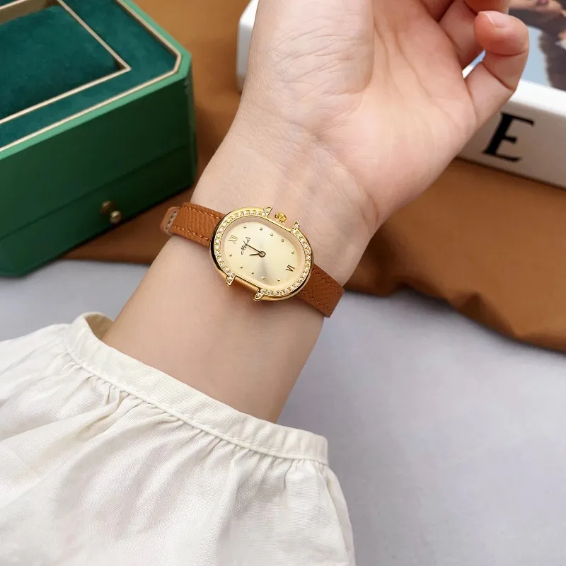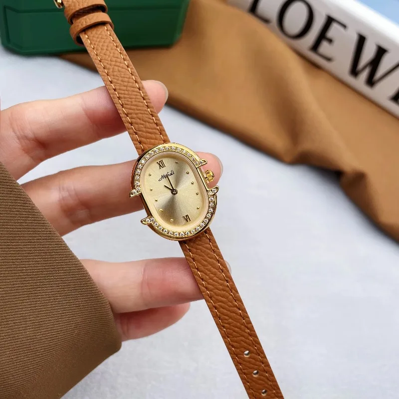 2026 New Women's Quartz Watch Antique Simple Professional Women's Bracelet Rhinestones Luxury Watch with Genuine Leather