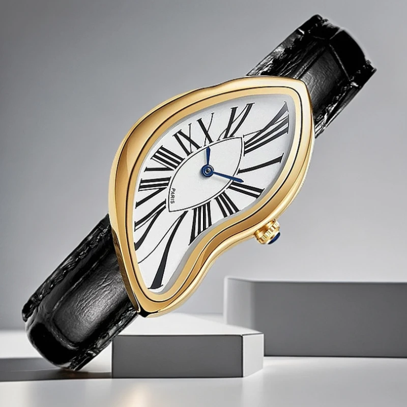 Custom Logo Unique Shape Men Watch Crocodile Pattern Black Leather Business Casual Dress Wrist Watch