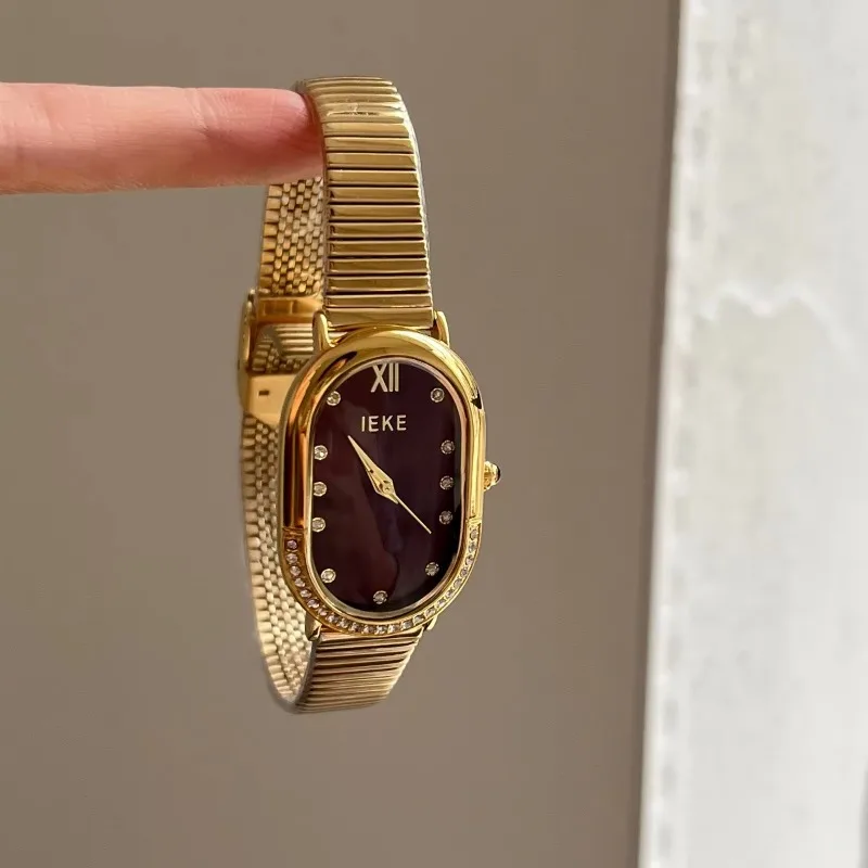 IEKE 724 Antique Retro Vintage Woman Women's Watch Oval Round Diamond Quartz Women's Watch