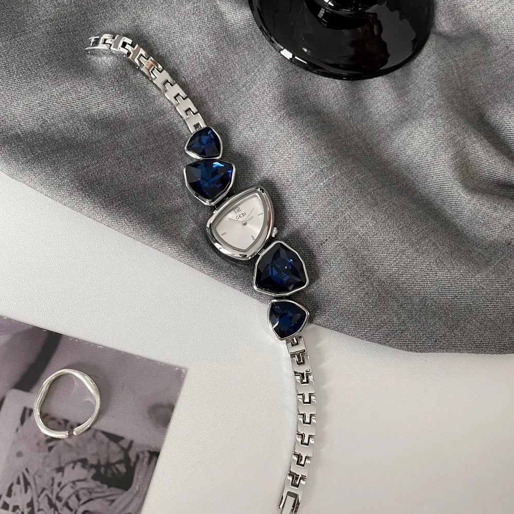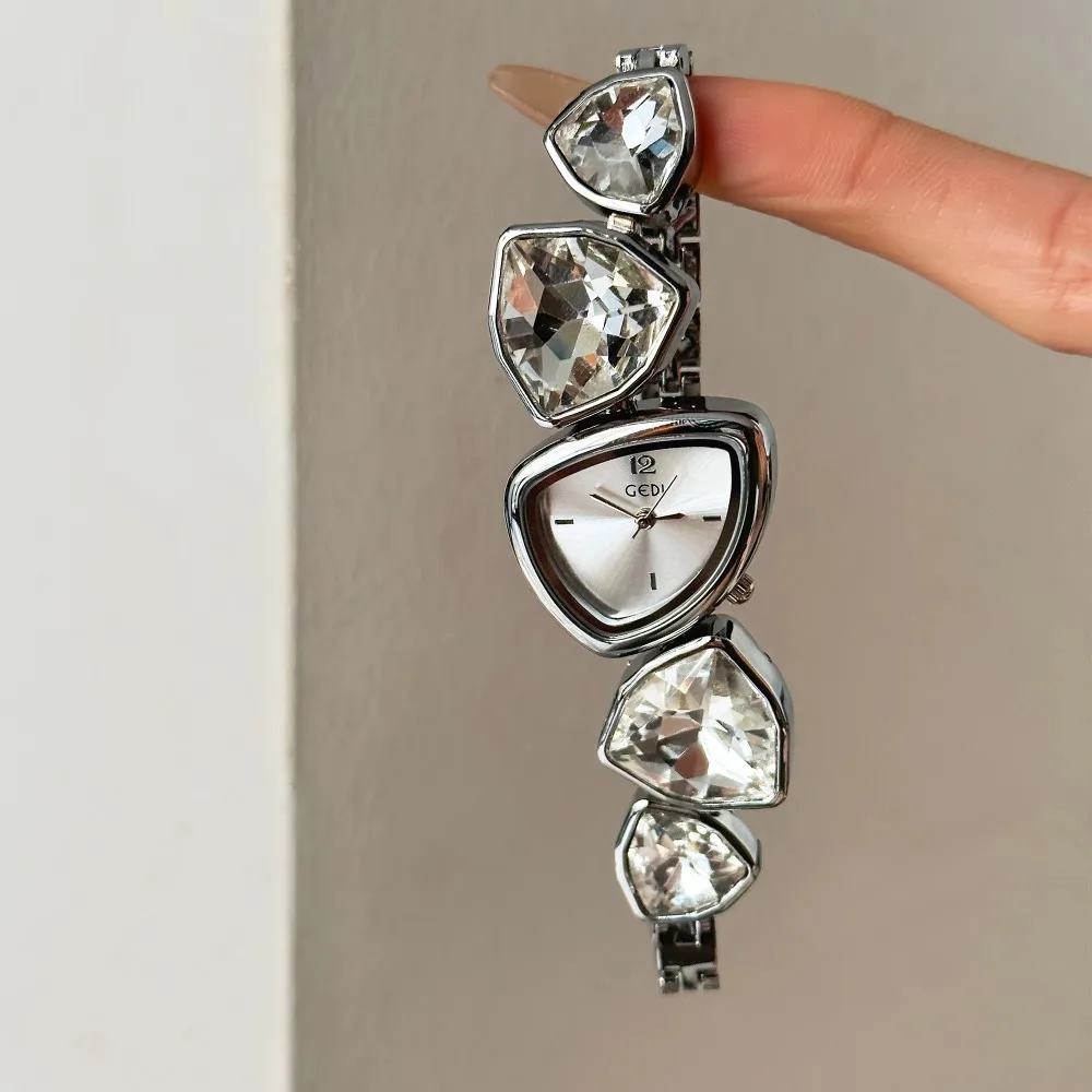 GEDI Bracelet Watch Crystal Irregular Strap Unique Design High End Luxury Fashion Ladies Wristwatch Jewelry Stainless Steel