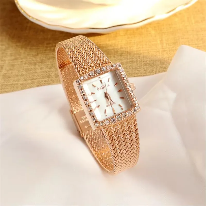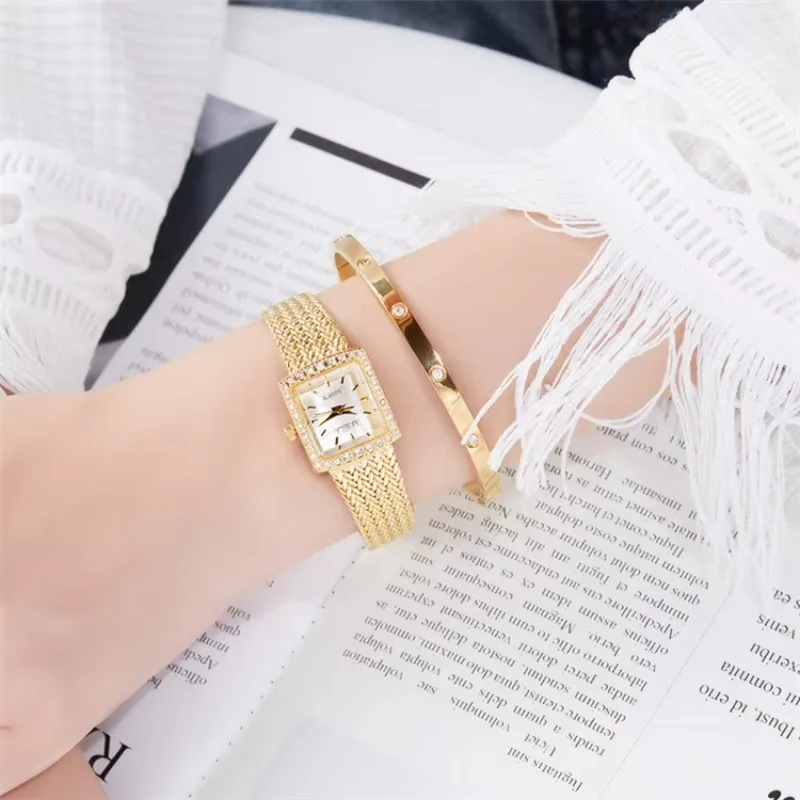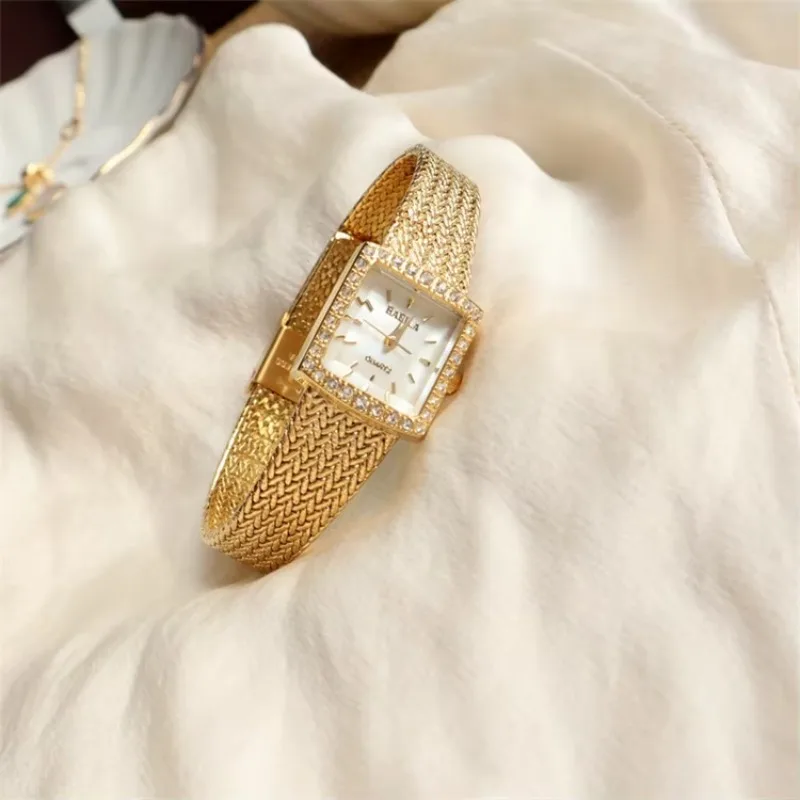 New Vintage Luxury square Diamond-studded Retro Quartz Watch Wheat Spike Watch Band Women's 30bar