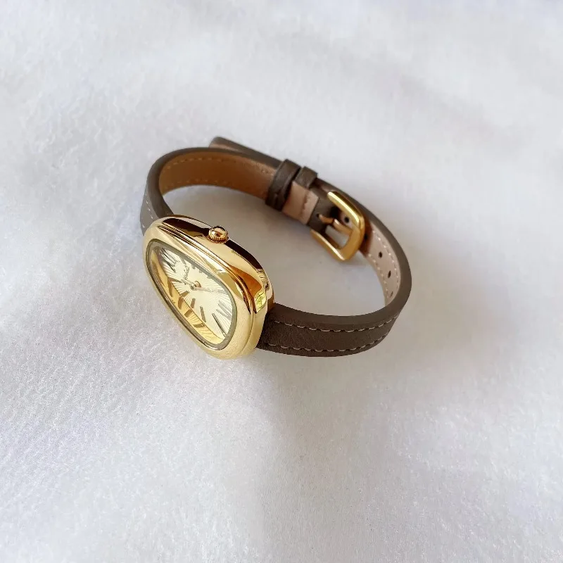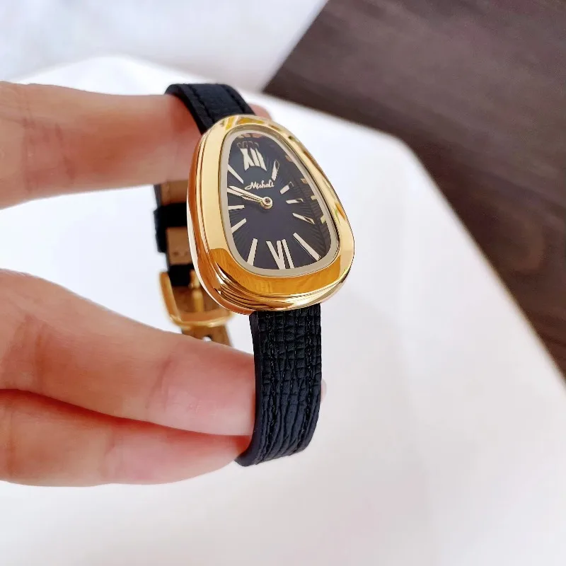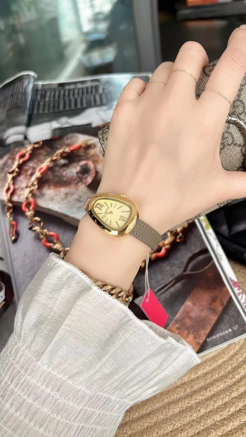 New Quartz Women's Watch Snake Head Roman Data Display Leather Gold/silver Black Dial Luxury High-end Wristwatch for Ladies
