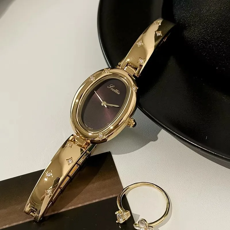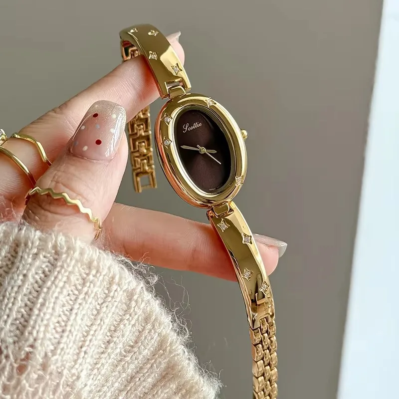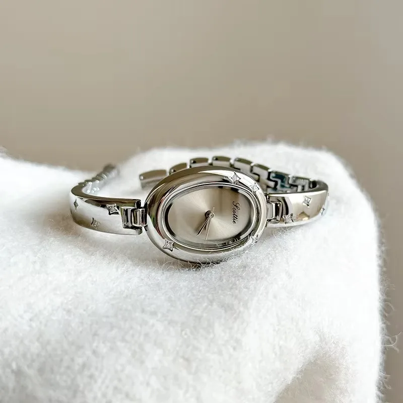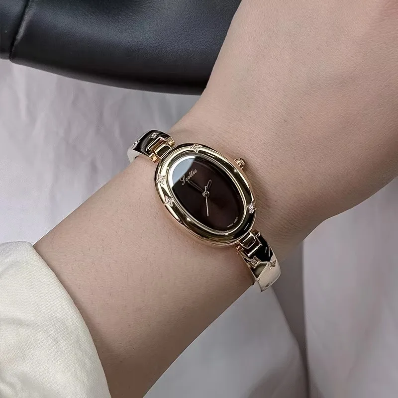 2026 Oval Dial Women's Quartz Watch Half Bracelet Half Bracelet Light Luxury Niche Women's Luxury Ladies Wristwatch