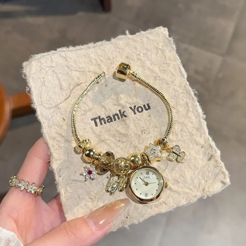 High Quality Vintage Women's Watch Exquisite Bracelet Watch Niche Luxury Cartoon Pendant Quartz Women's Watch Jewelry for Women