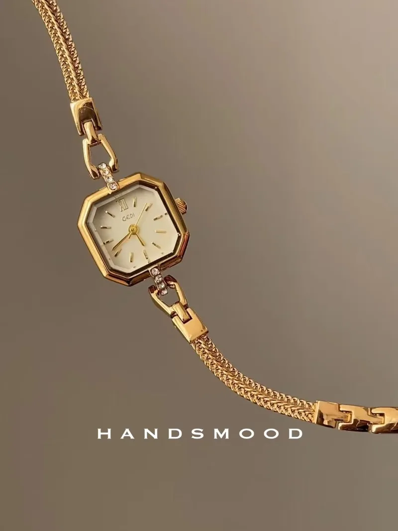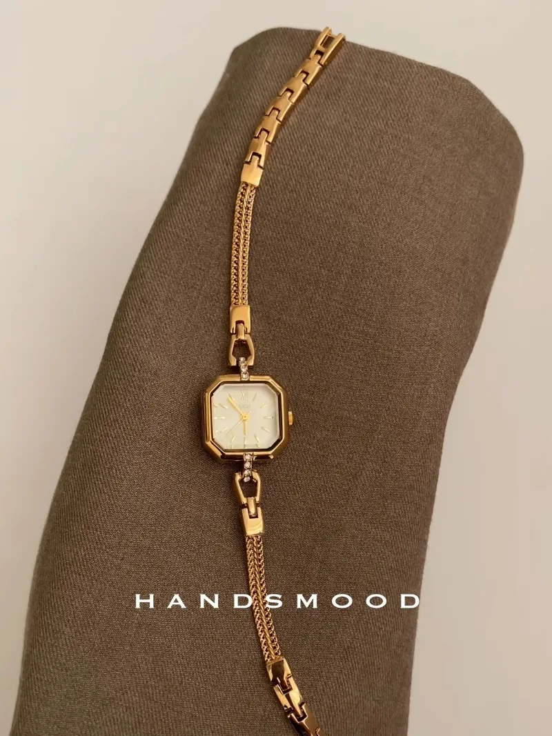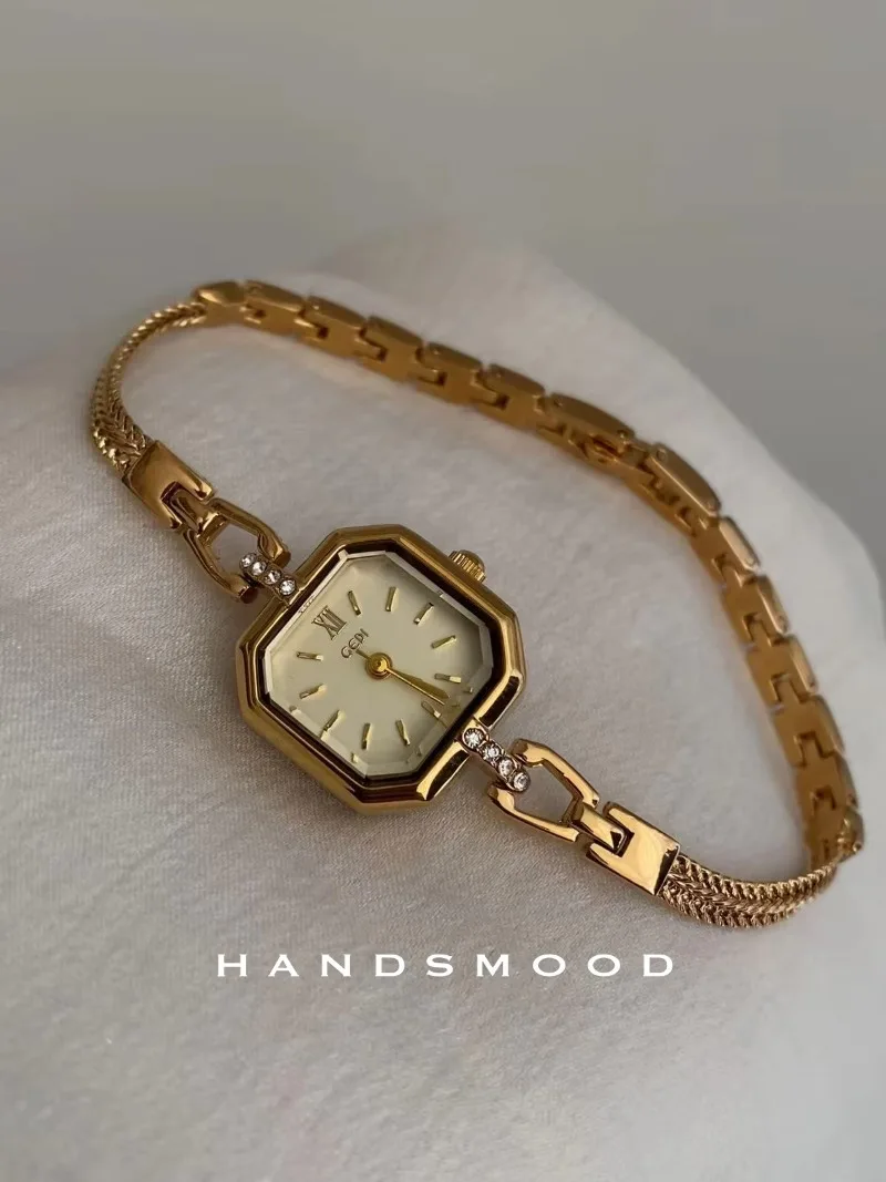 2026 Golden Vintage Women's Watch with Diamond Inlay Light Luxury Vintage Style Bracelet High-end Watch for Women
