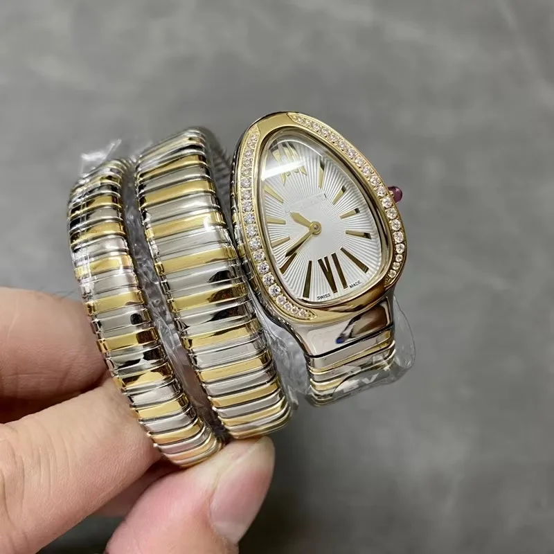 2026 New Luxury Women Watch with Snake-Head Design Diamond Decoration Quartz Movement Stainless Steel Band