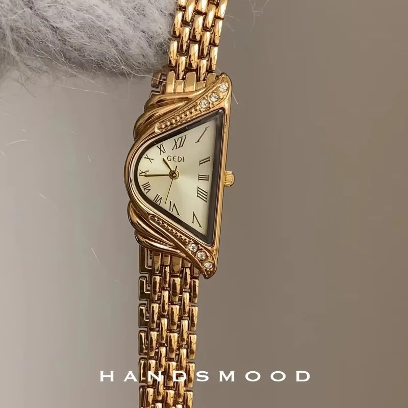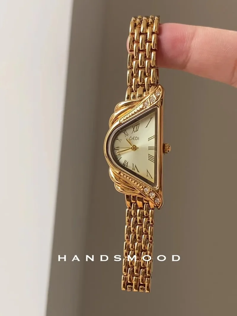 High Quality Vintage Style Women Watches Gold Harp Niche Design Fashionable Personality Watch for Women Simple Temperament