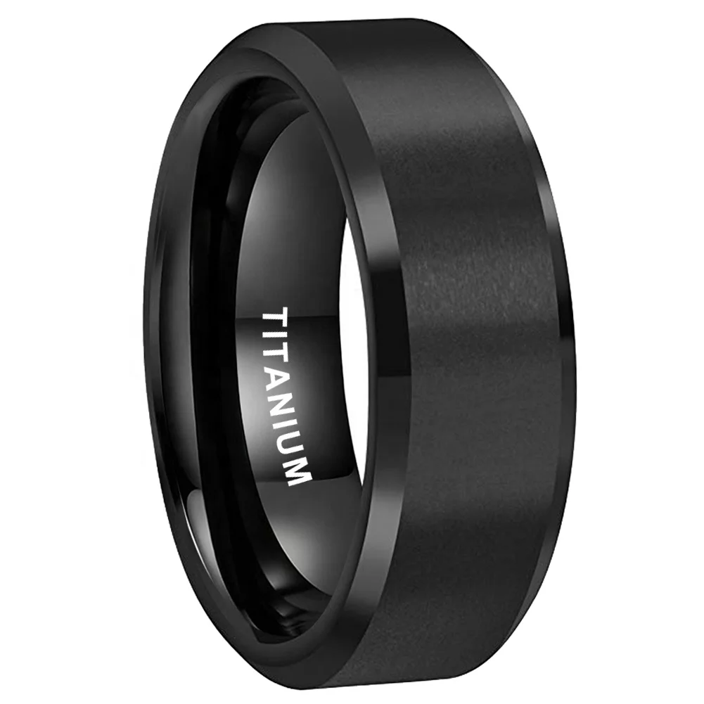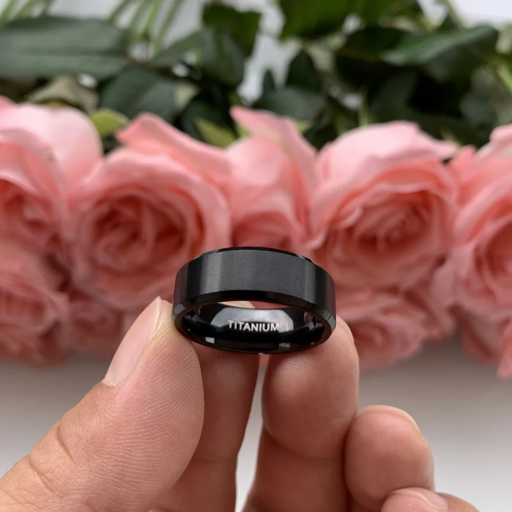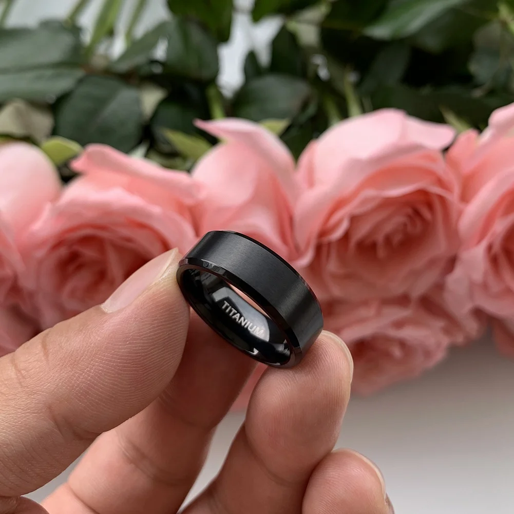 Coolstyle Jewelry Beveled Matte Finish 8mm Wholesale Black Titanium Ring for Men Women Fashion Engagement Wedding Band