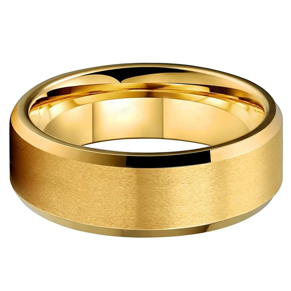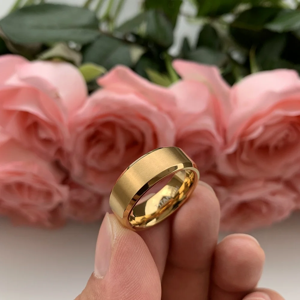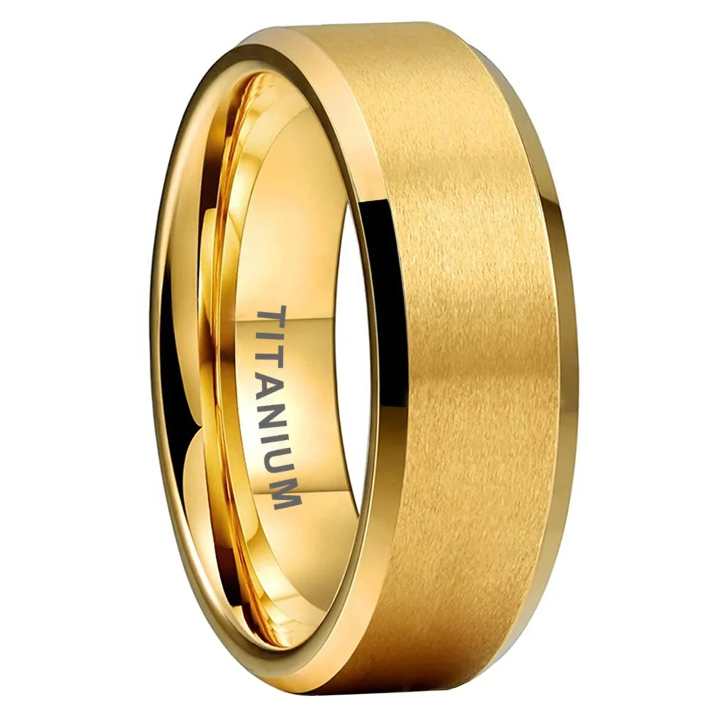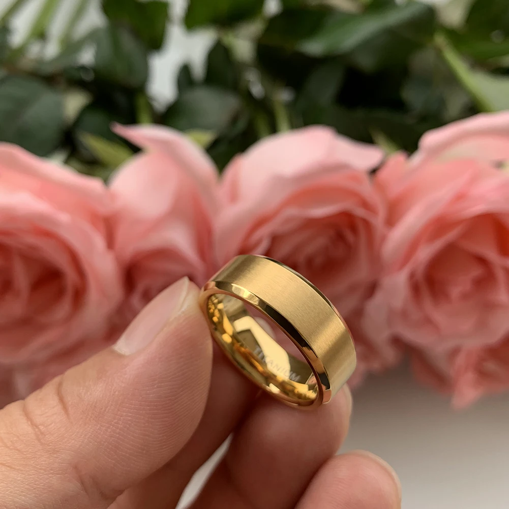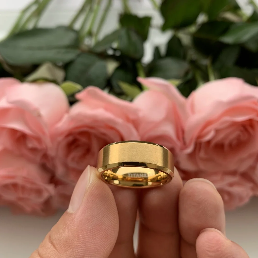 Coolstyle Jewelry Beveled Matte Finish 8mm Wholesale Gold Plated Titanium Ring for Men Women Fashion Engagement Wedding Band