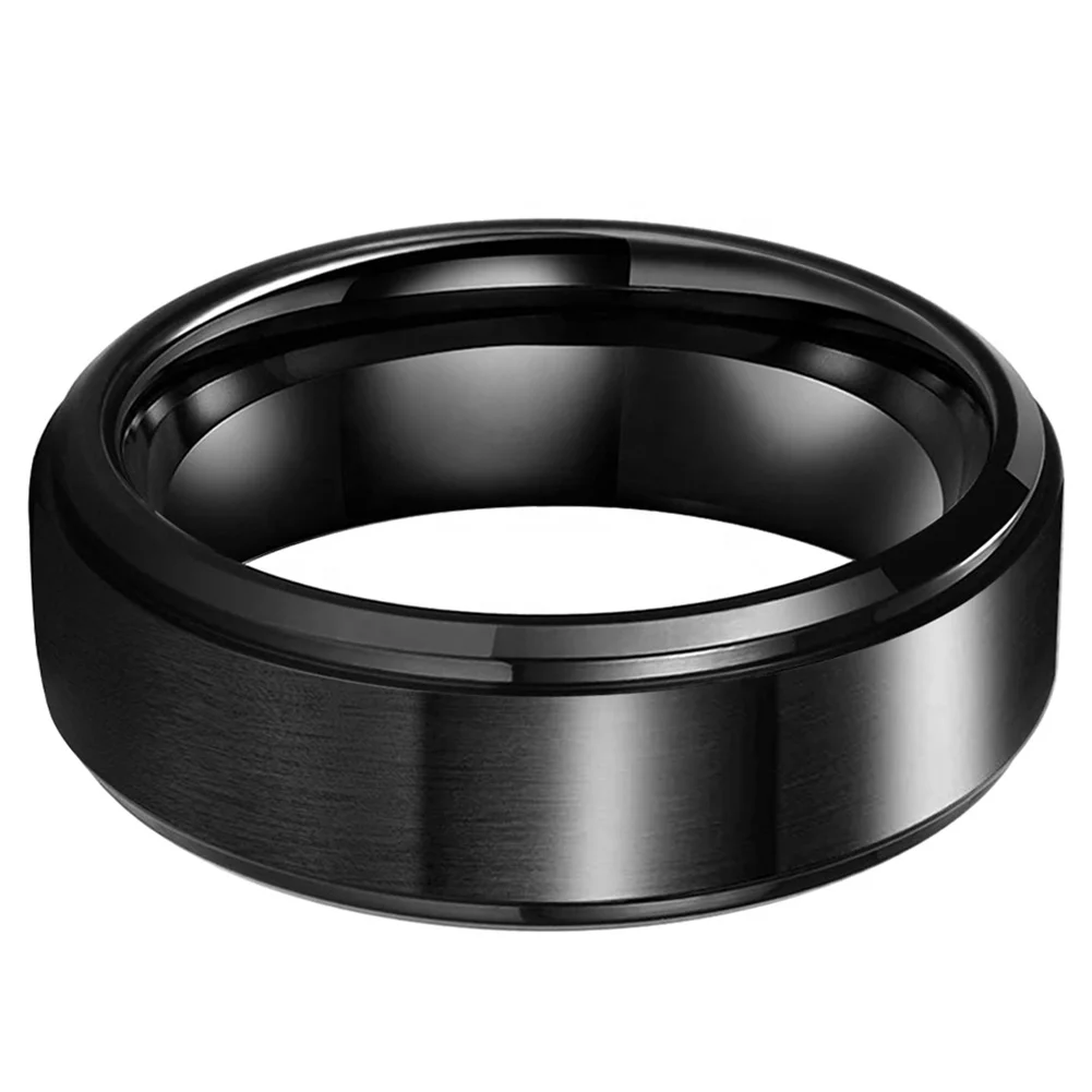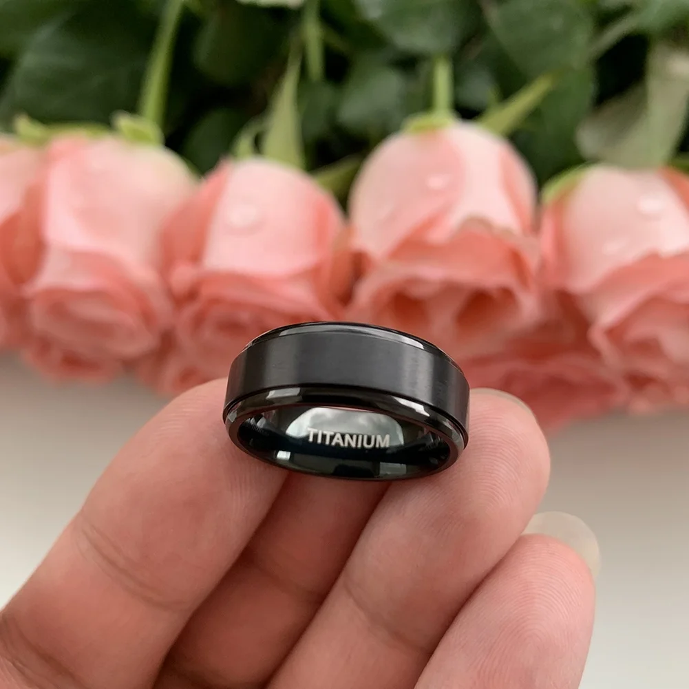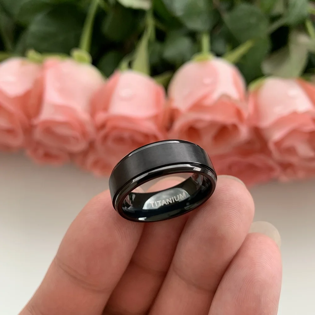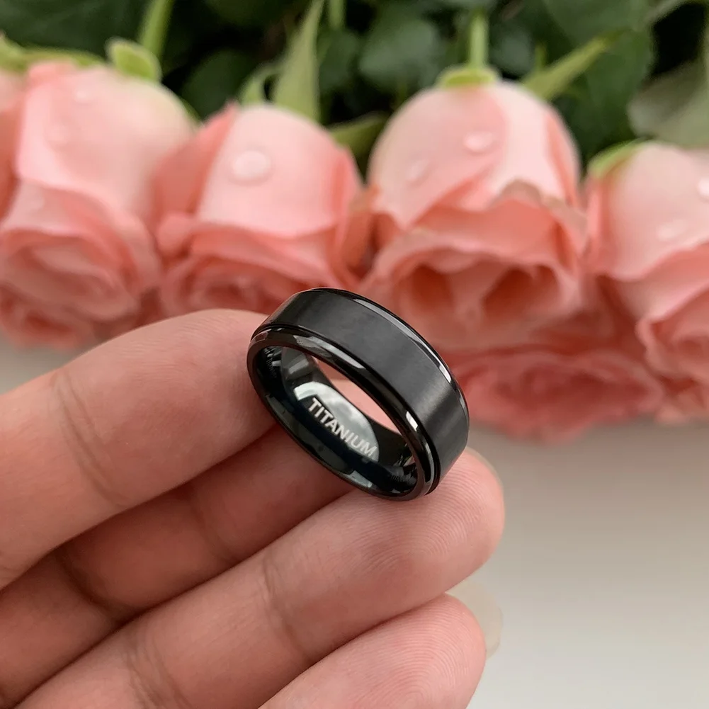 Coolstyle Jewelry 8mm Stepped Beveled Matte Finish Wholesale Black Titanium Ring for Men Women Fashion Engagement Wedding Band