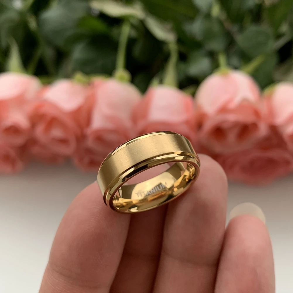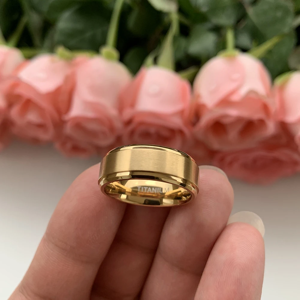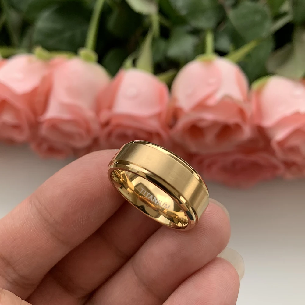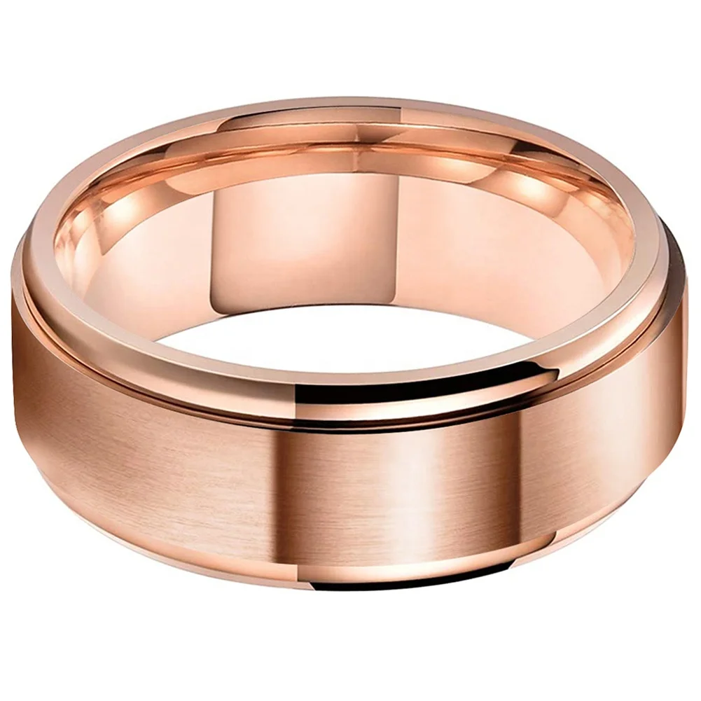 Coolstyle Jewelry 8mm Stepped Beveled Edges Wholesale Rose Gold Titanium Ring for Men Women Fashion Engagement Wedding Band
