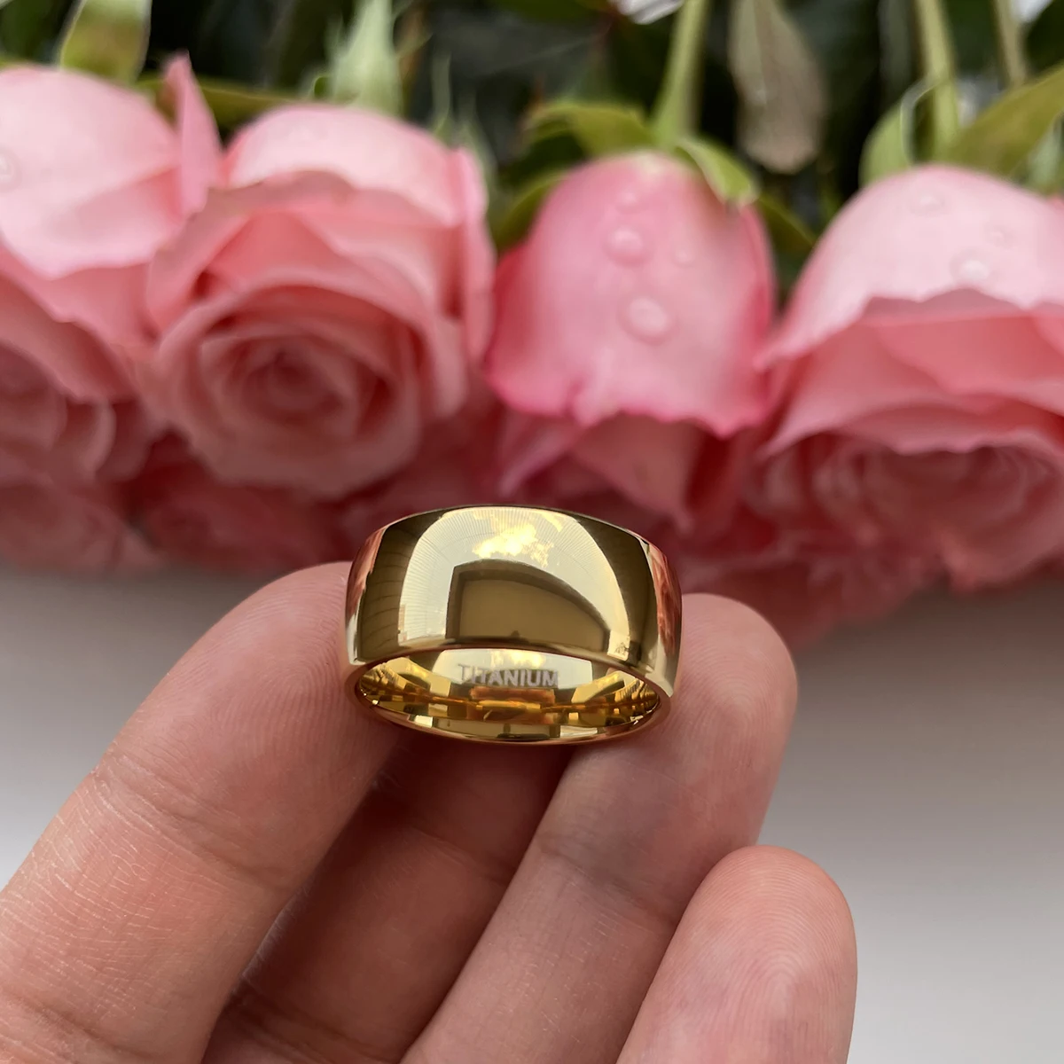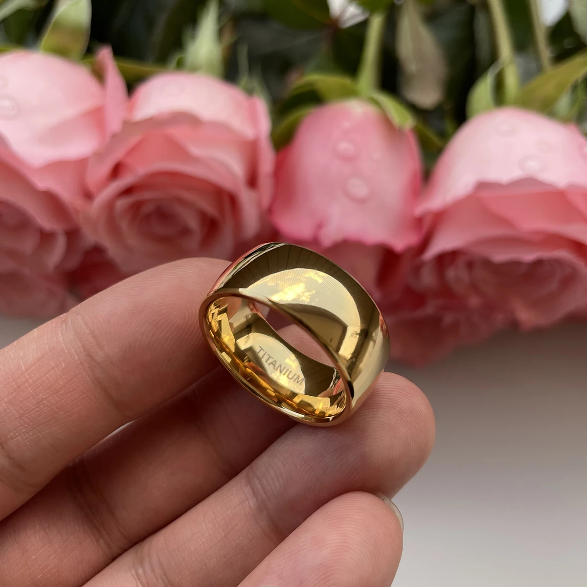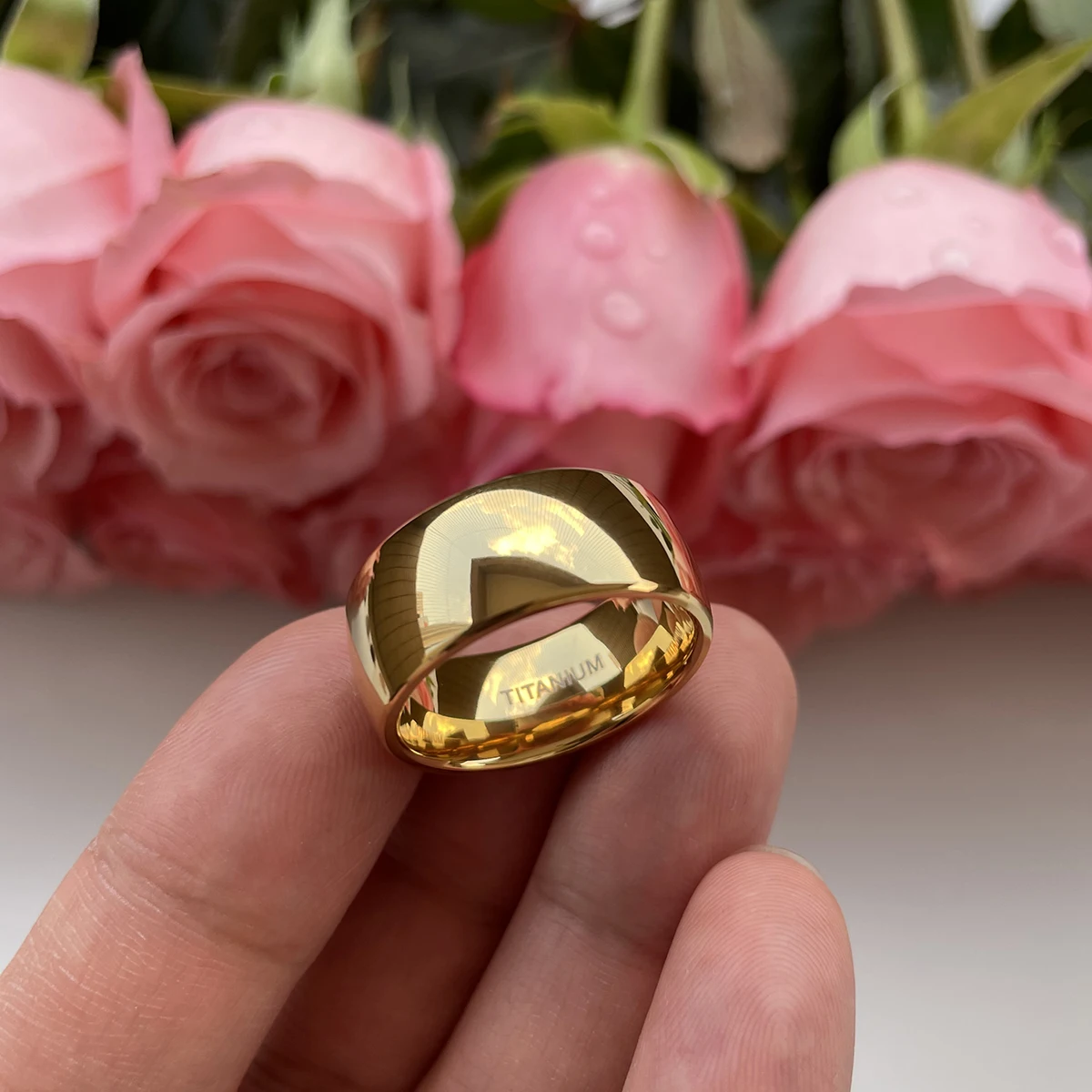 Coolstyle Jewelry 10mm Domed Polished Shiny Wholesale Gold Plated Titanium Ring for Men Women Fashion Engagement Wedding Band