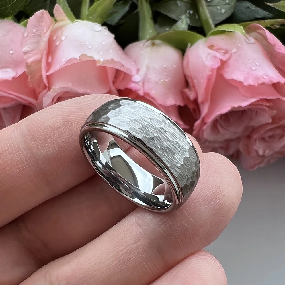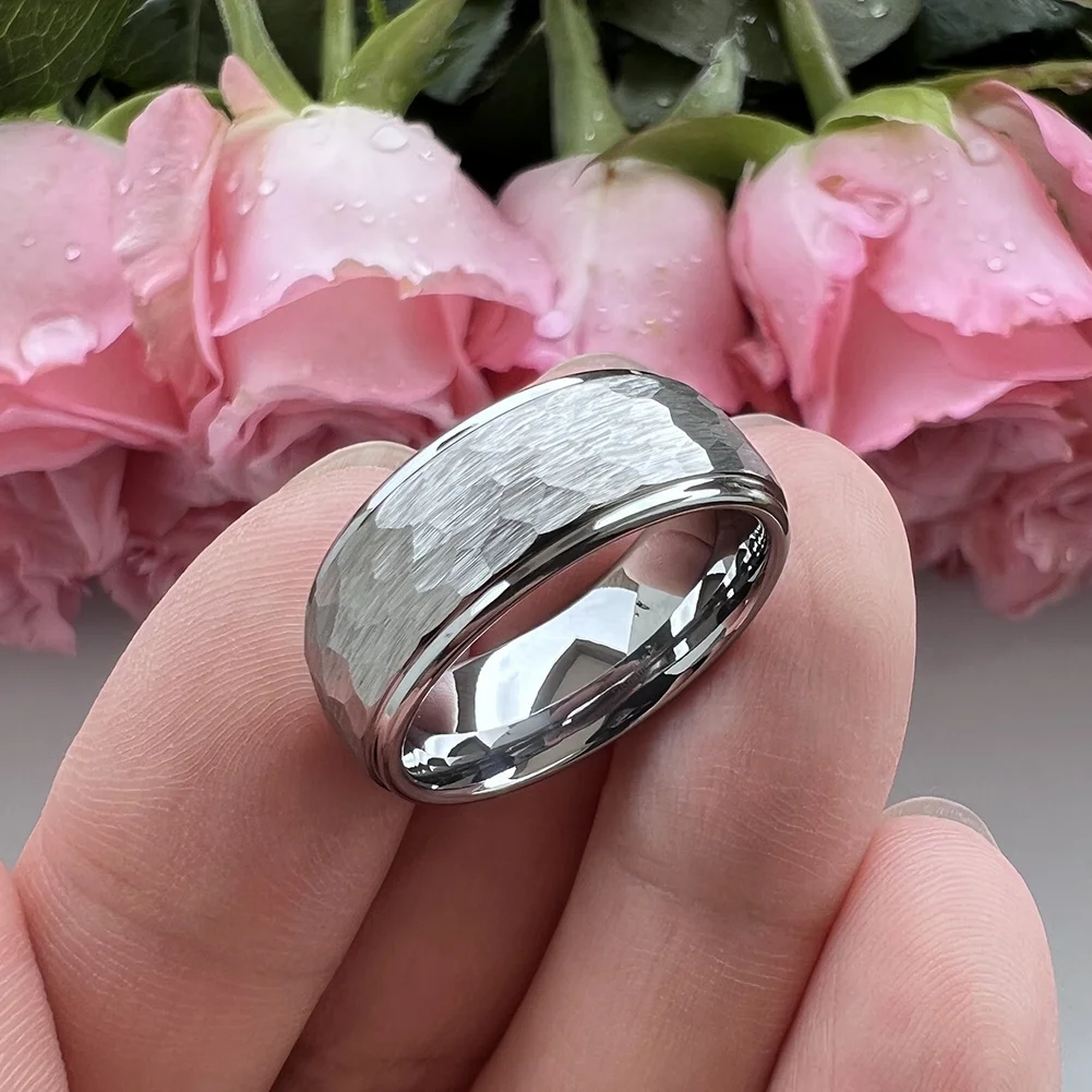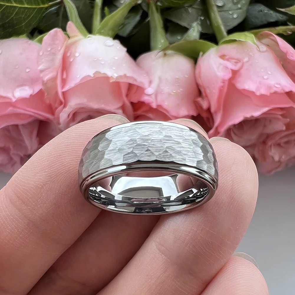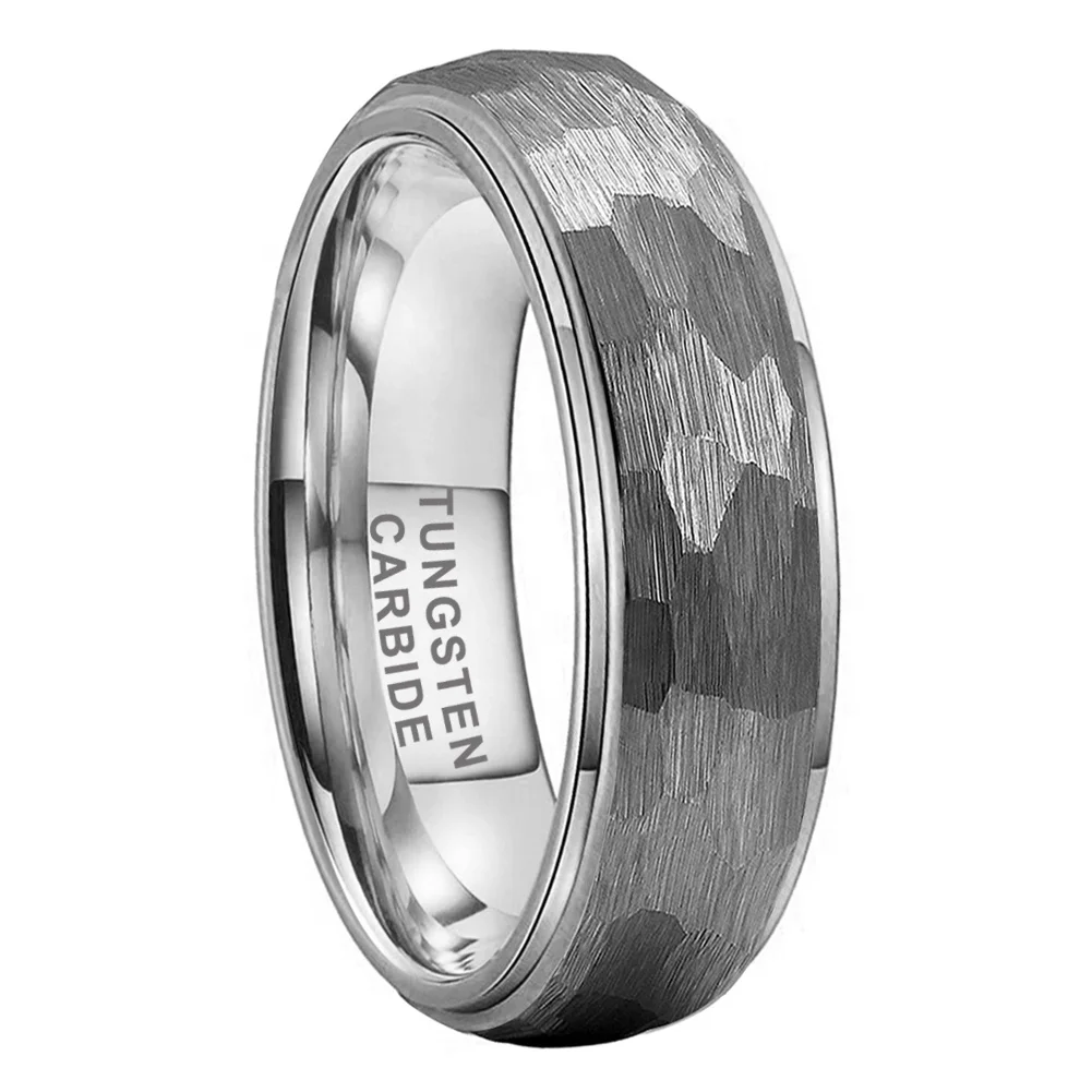 Coolstyle Jewelry 6mm 8mm Hammered Tungsten Ring Men Women Fashion Couple Engagement Wedding Band Stepped Edges Comfort Fit
